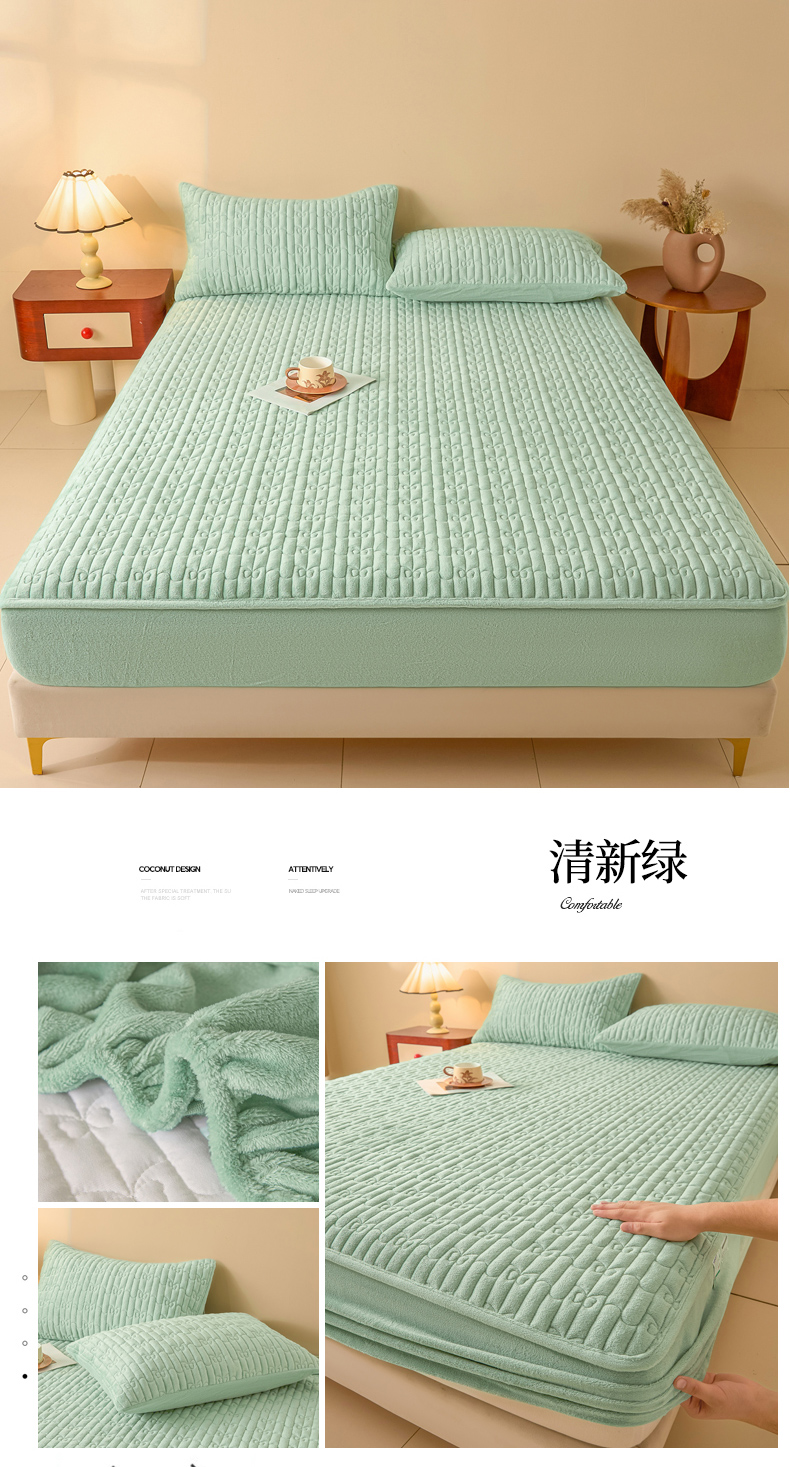 (总)Sweet dreams甜梦 2025新款A类纯色牛奶绒夹棉床盖,青石绿,藏青,粉玉,米黄,浅灰,清新绿,深灰,天蓝,驼色