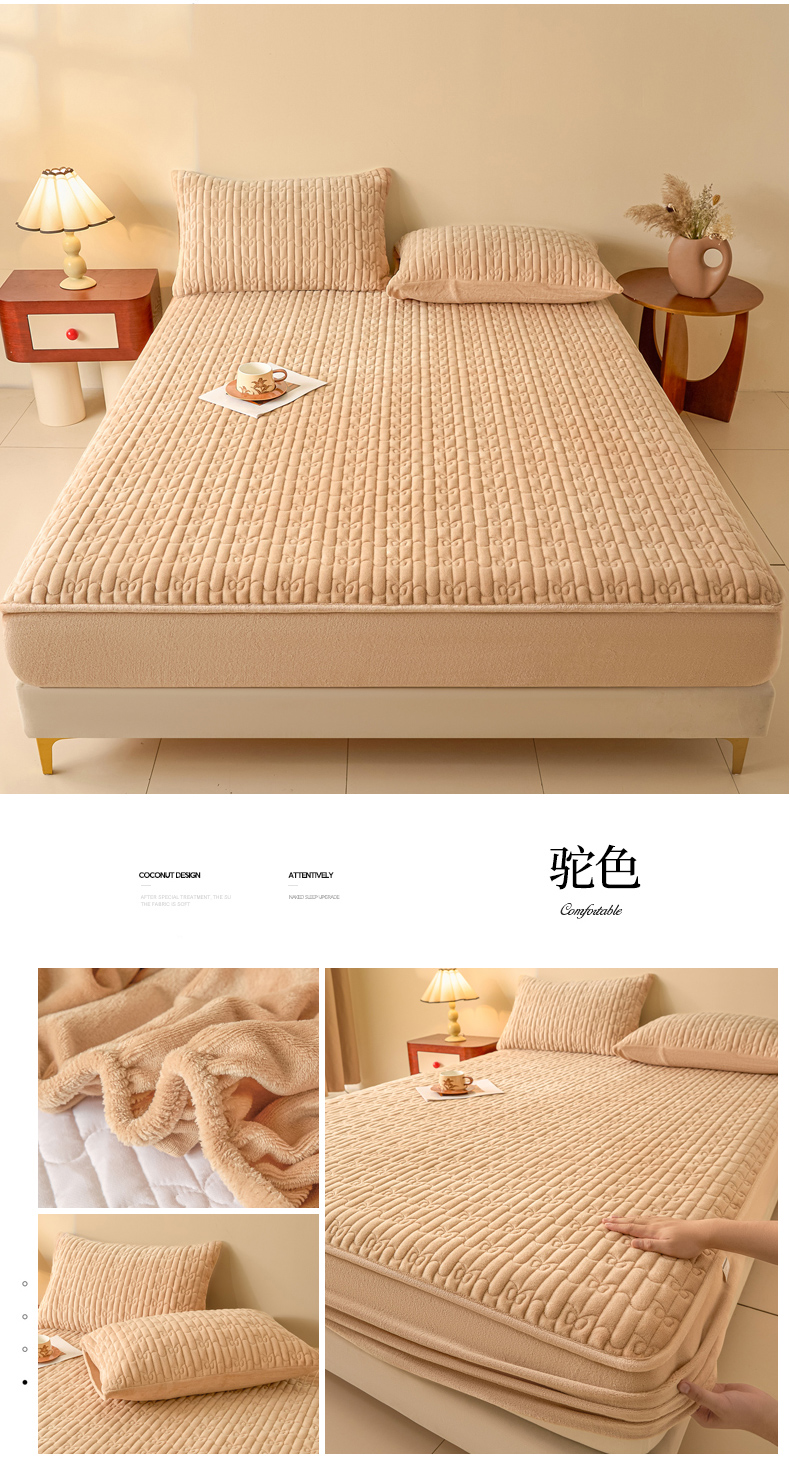 (总)Sweet dreams甜梦 2025新款A类纯色牛奶绒夹棉床笠,驼色,藏青,粉玉,米黄,浅灰,青石绿,清新绿,深灰,天蓝