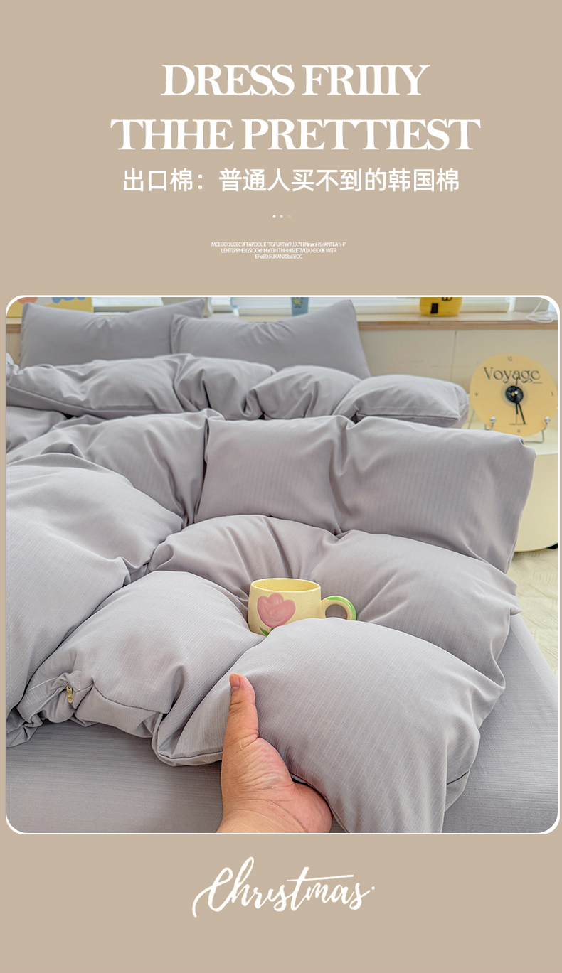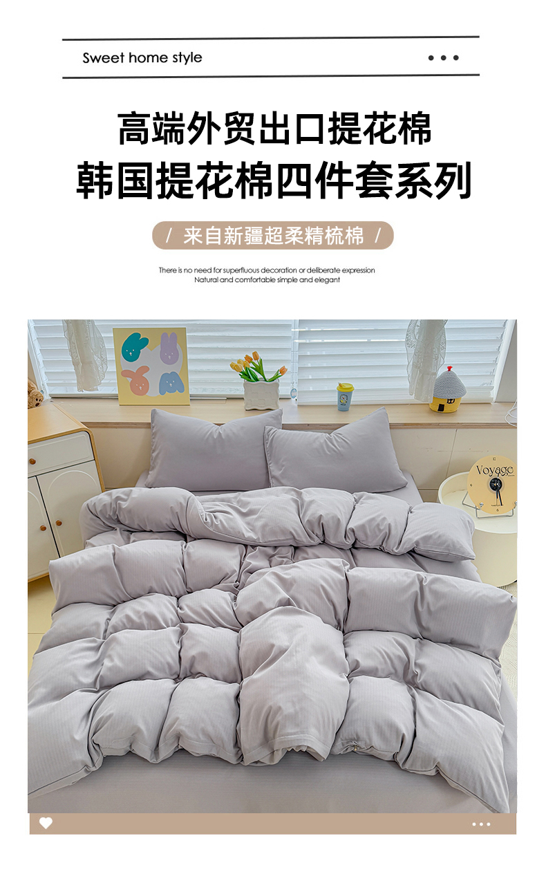 2026新款苏东来家纺外贸出口跨境韩国提花棉四件套高端超柔手感超好(长期做,十年不换款) T灰色