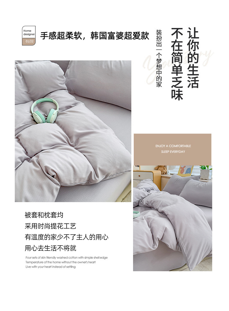 商品名称:2026新款苏东来家纺外贸出口跨境韩国提花棉四件套高端超柔手感超好(长期做,十年不换款) T灰色