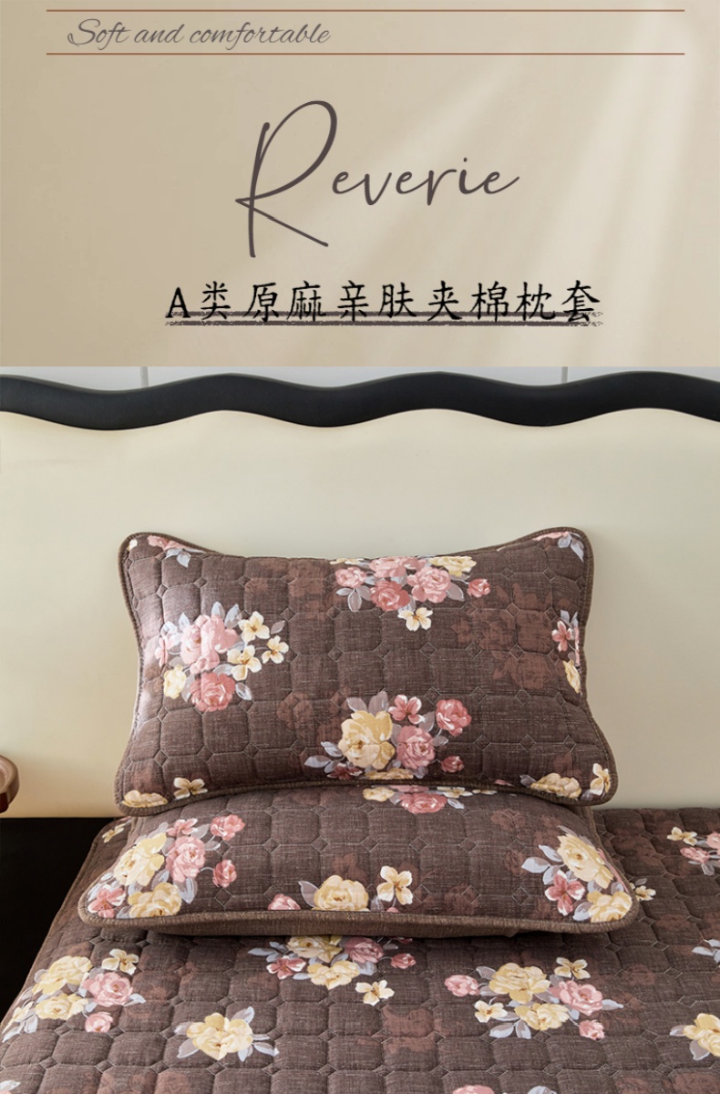 (总)圣比熊 2026新款原麻夹棉床笠机洗家用防滑透气四季款加厚床罩床垫床单保护套三件套-新款,古堡花园-咖,金枝玉叶,春风序,东方墨兰,繁花,浮绘花影-白,漫步花丛-蓝,秋日,素锦