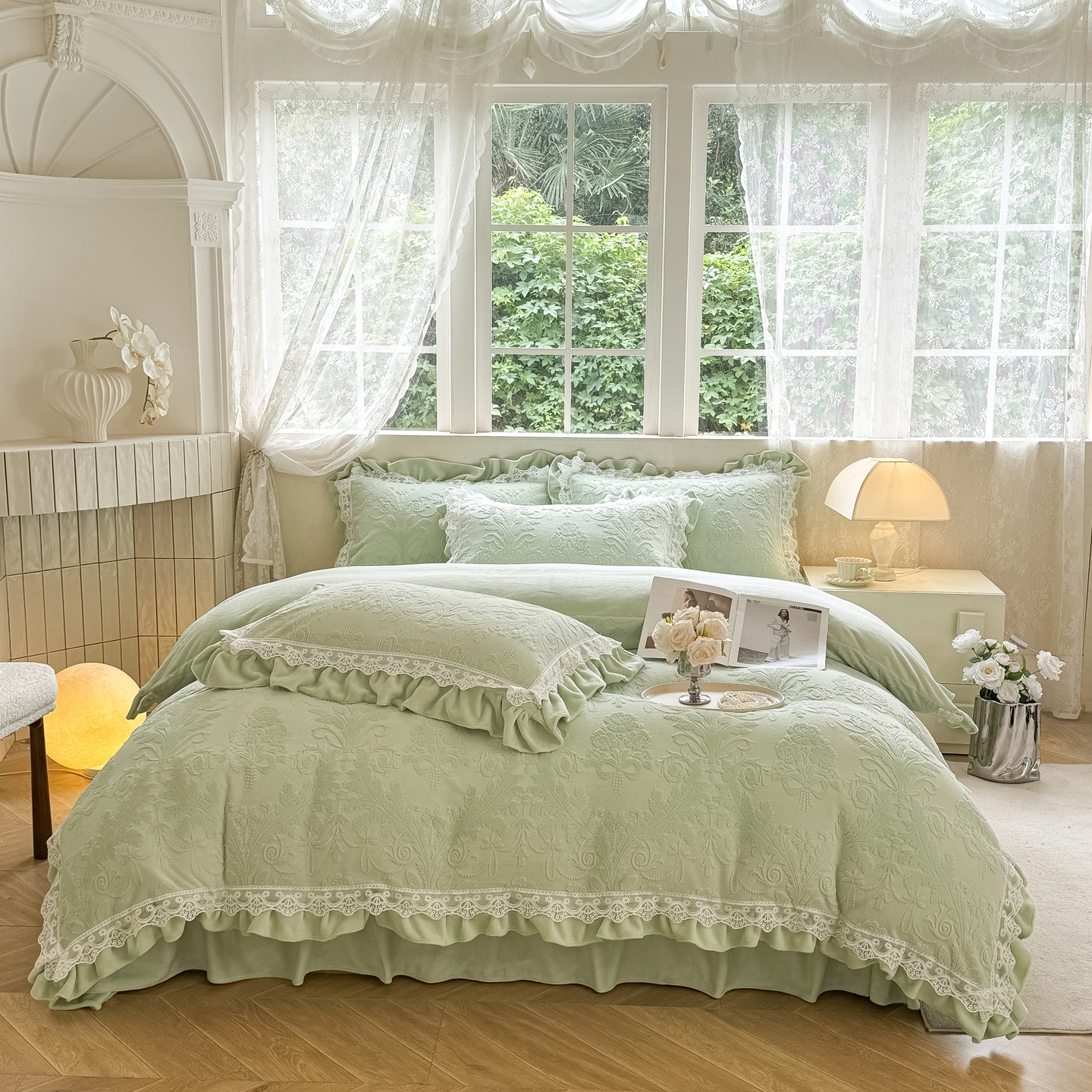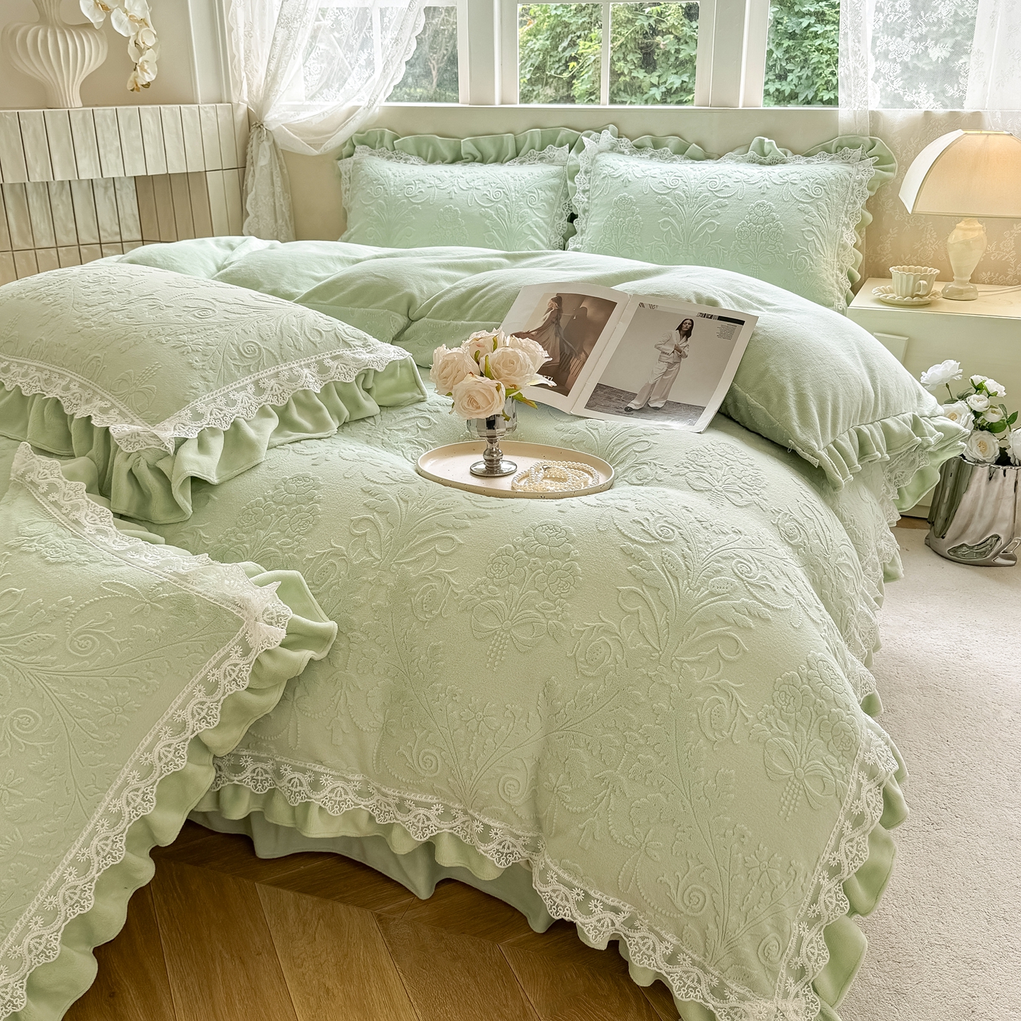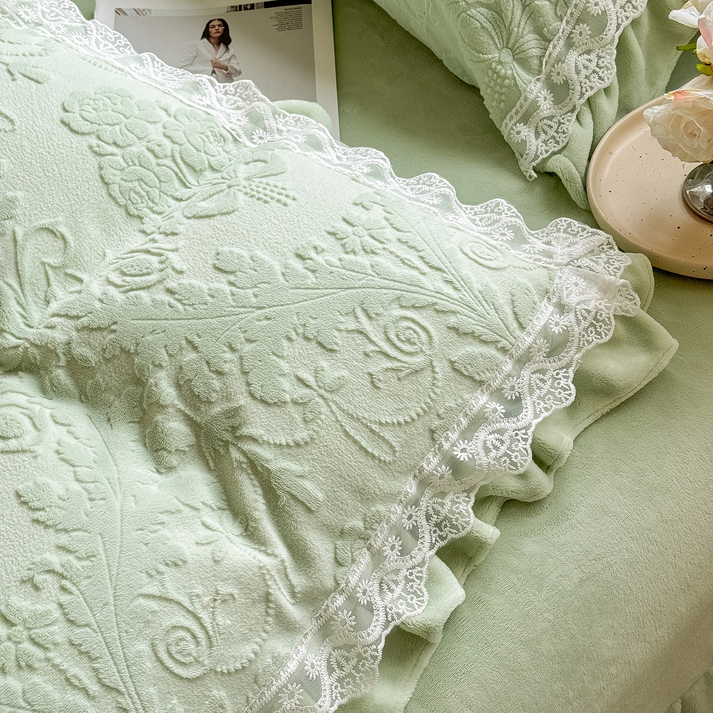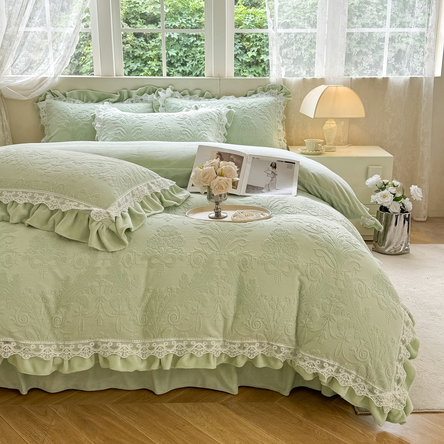 久久红 2025新款高克重牛奶绒四件套系列 浅绿