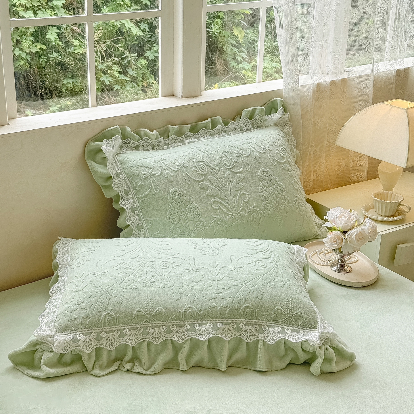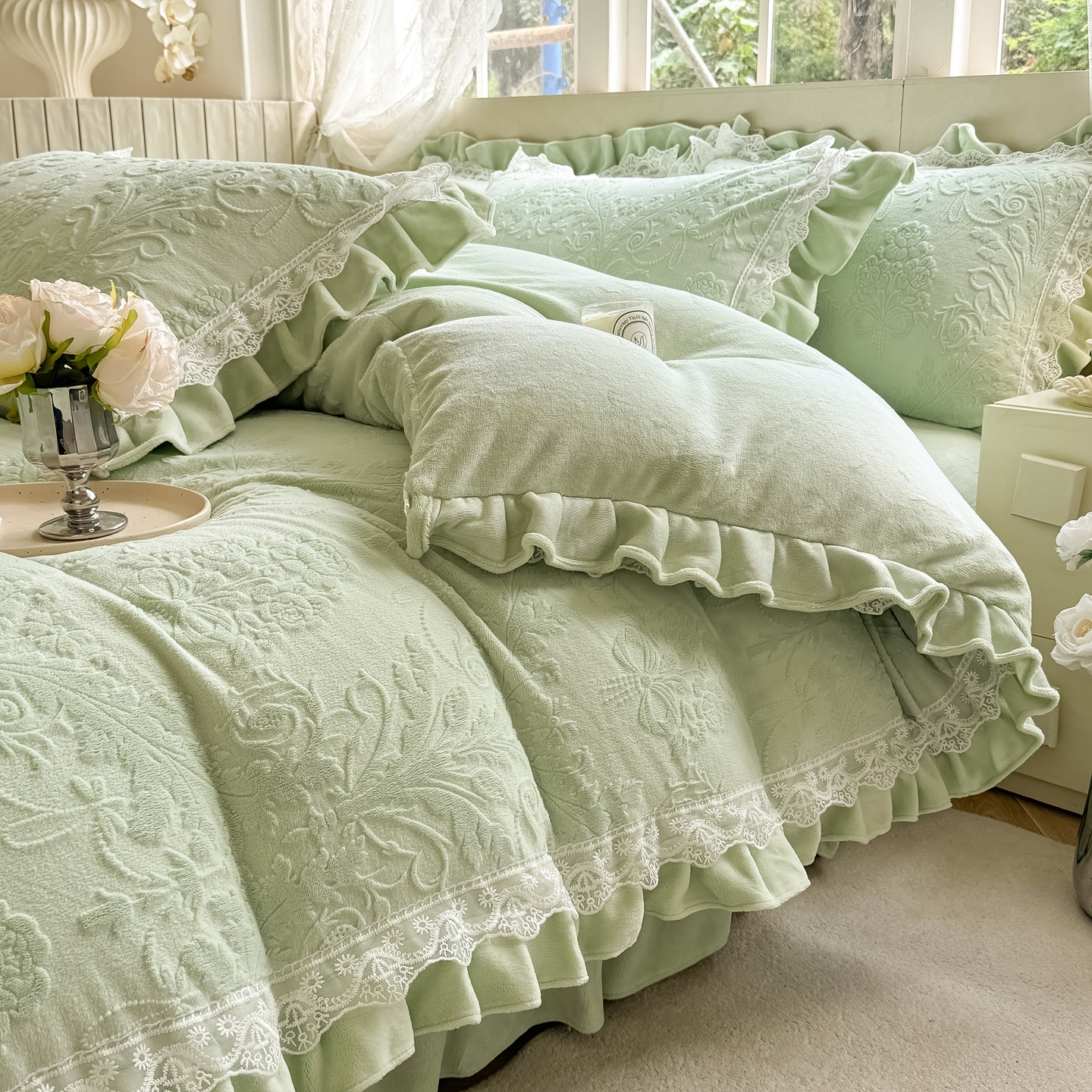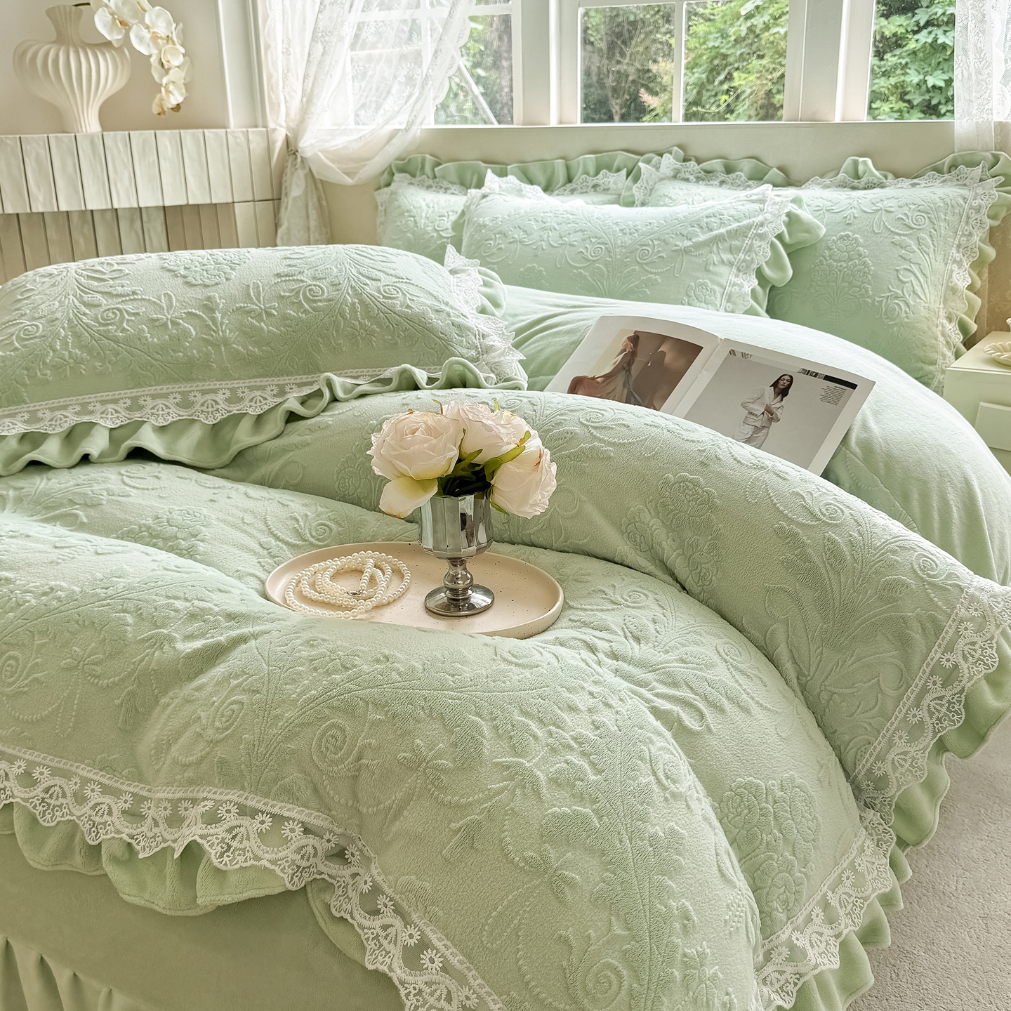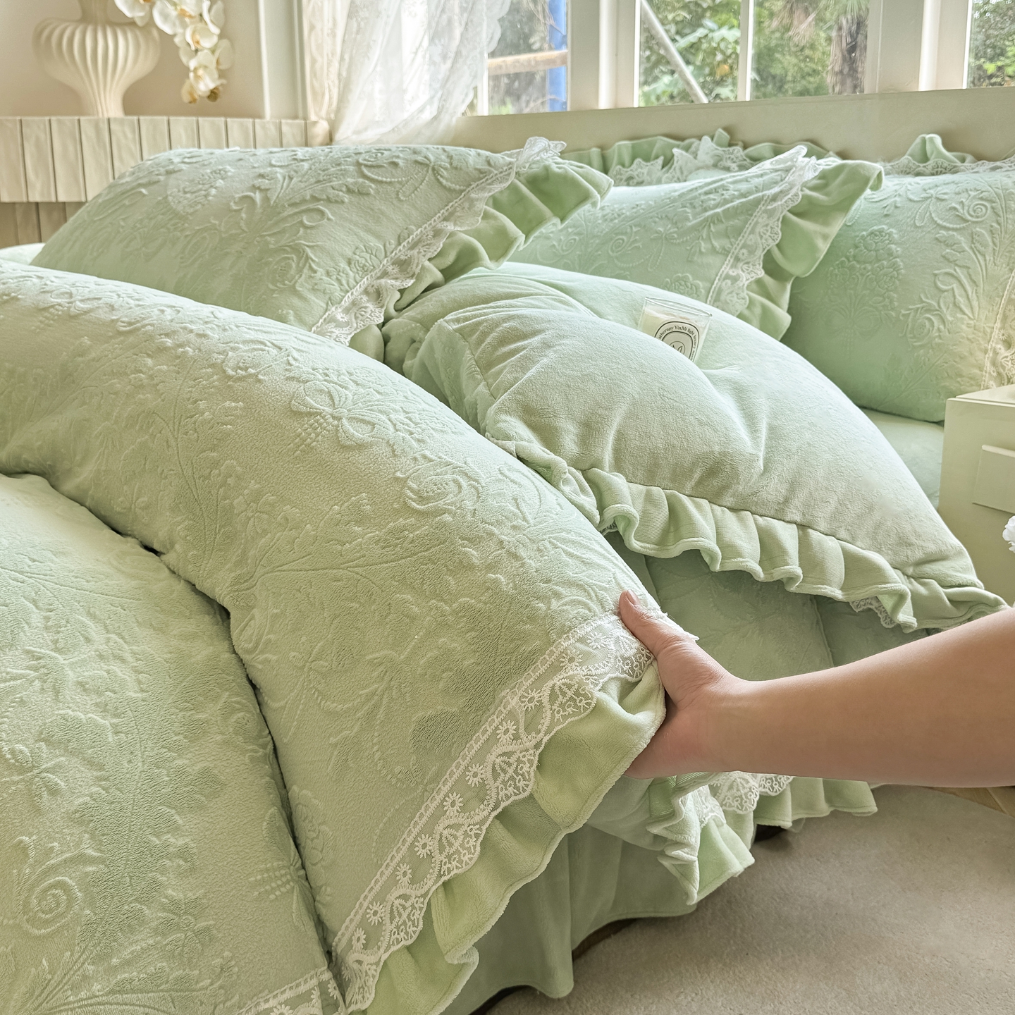久久红 2025新款高克重牛奶绒四件套系列 浅绿