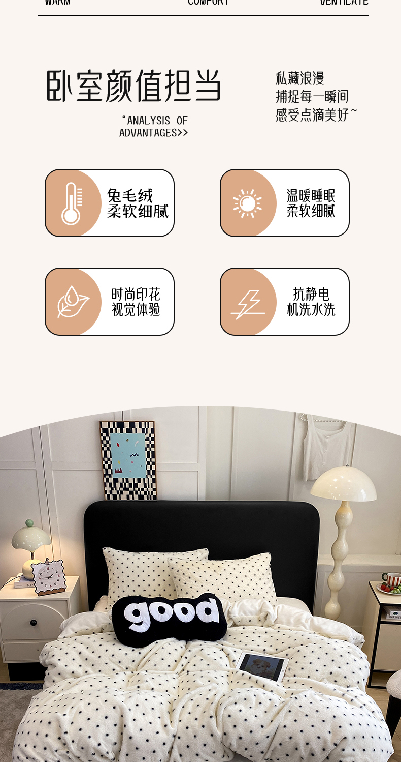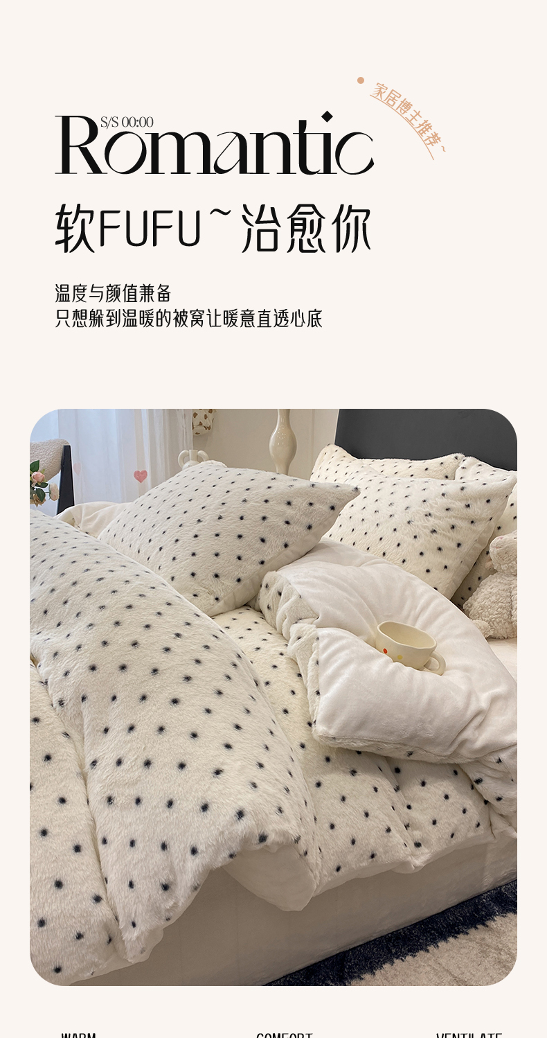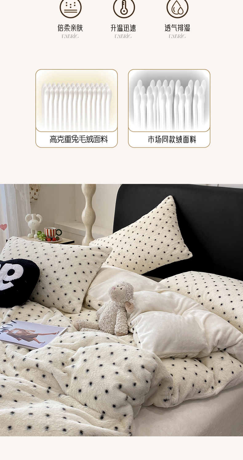 (总)蝶帕家纺 2025新款兔毛绒印花四件套,斑马纹咖,小波点,马格丽,水墨玫瑰,心动,波点咖,红格小黑猫