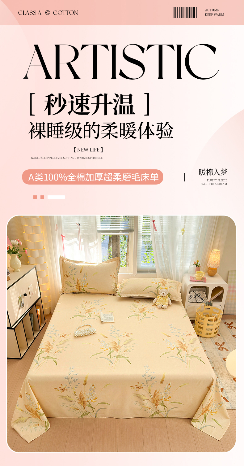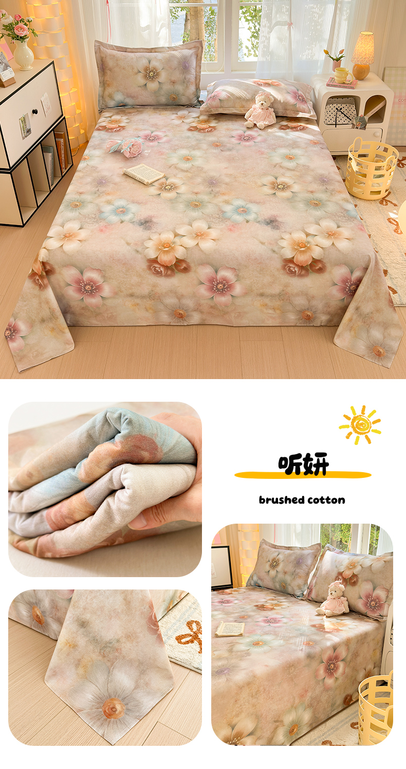 • 91家纺网 家纺一手货源 找家纺 拾物记 2025新款A类全棉纯棉加厚超柔磨毛单床单(提供买家秀质检报告和实验视频) 落拂