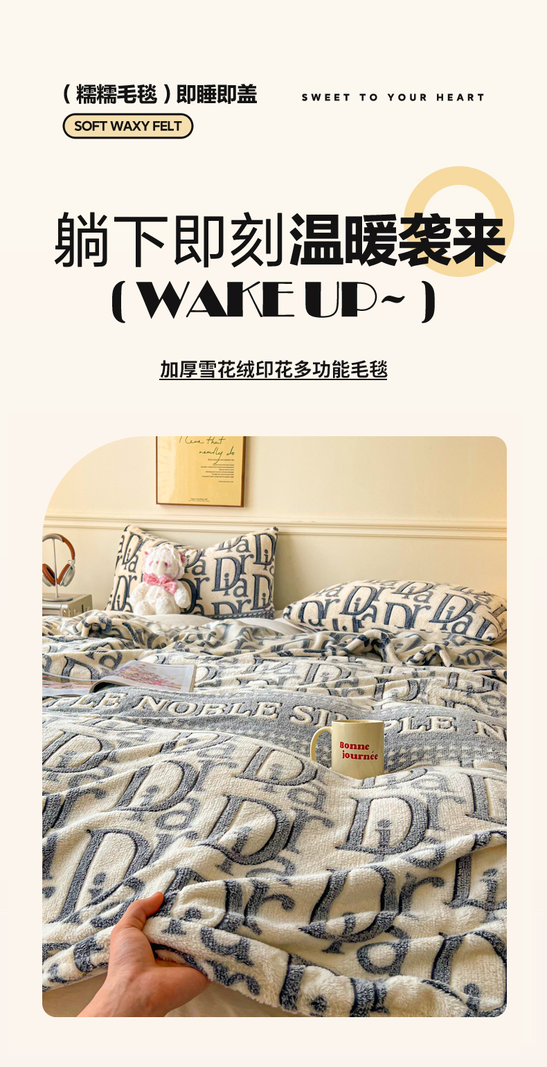 爱彼家纺 2025热门冬季加厚雪花绒印花多功能毛毯毯子修色图-系列二 迪欧