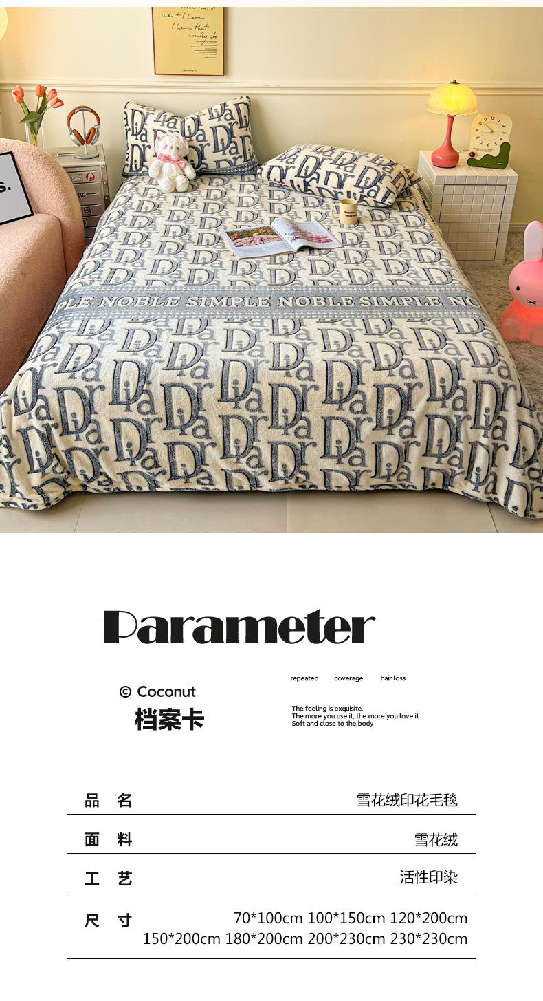 商品名称:爱彼家纺 2025热门冬季加厚雪花绒印花多功能毛毯毯子修色图-系列二 迪欧
