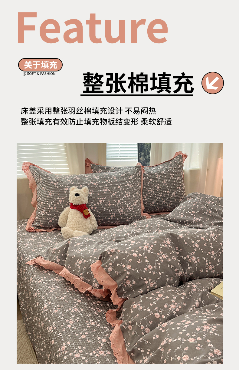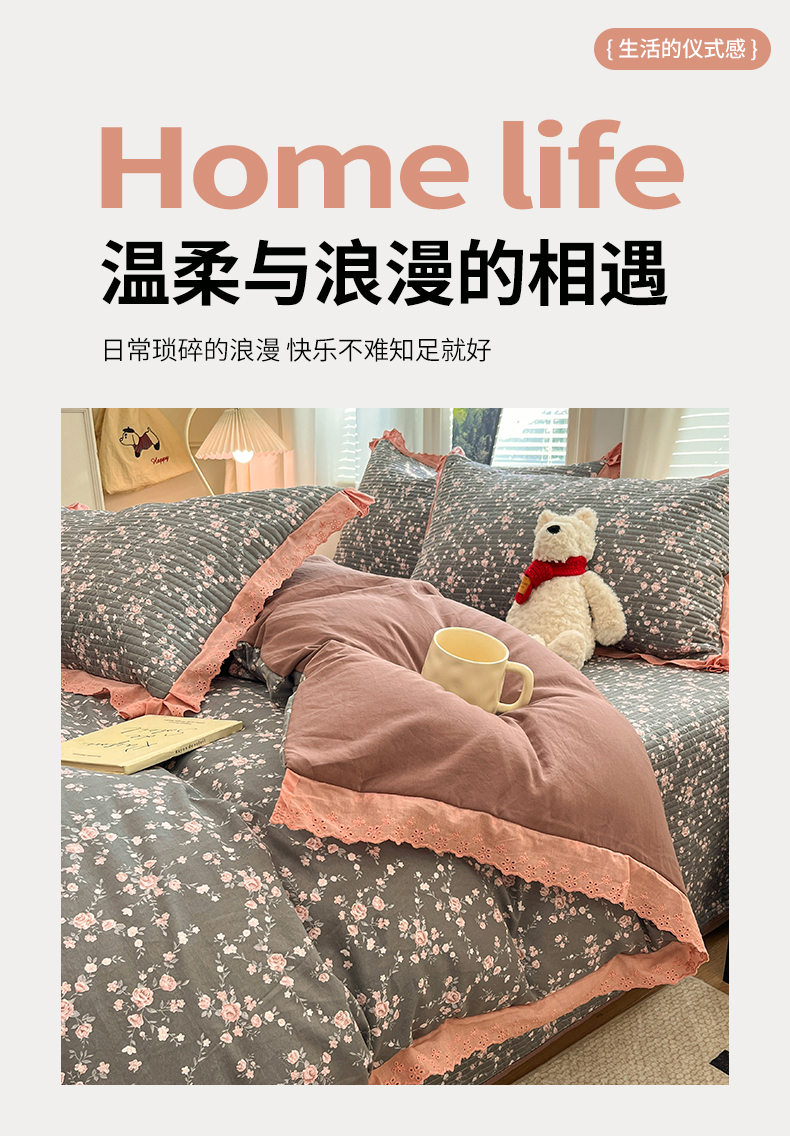 商品名称:优悦生活馆 2025新款全棉花边床盖四件套 田园