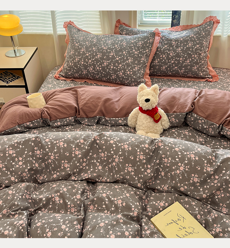 优悦生活馆 2025新款全棉花边床盖四件套 田园