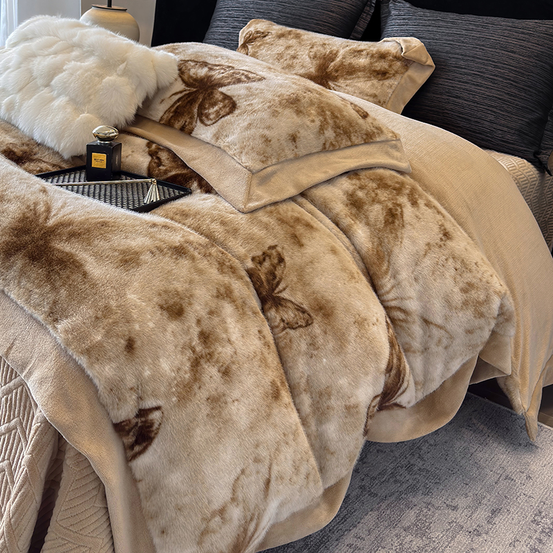 若未家居 LOVEWE HOUSE 2025新款蝴蝶风仿真貂绒床盖四件套A版400克B版260克-月光女神 月光女神 米杏