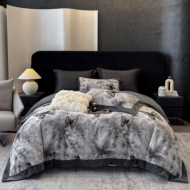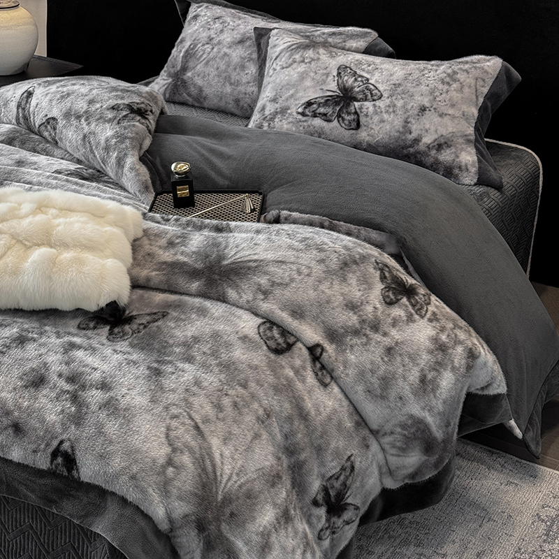 (总)若未家居 LOVEWE HOUSE 2025新款蝴蝶风仿真貂绒床盖四件套A版400克B版260克-月光女神,月光女神 米杏,月光女神 星空灰