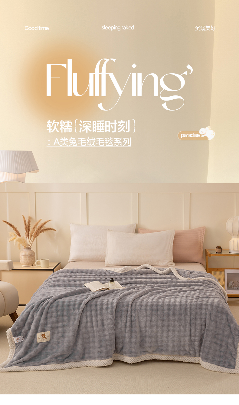 商品名称:爱彼家纺 2025热门冬季新款玉兔云绒毛毯单盖毯-多主图系列一 玉兔云绒-浅灰