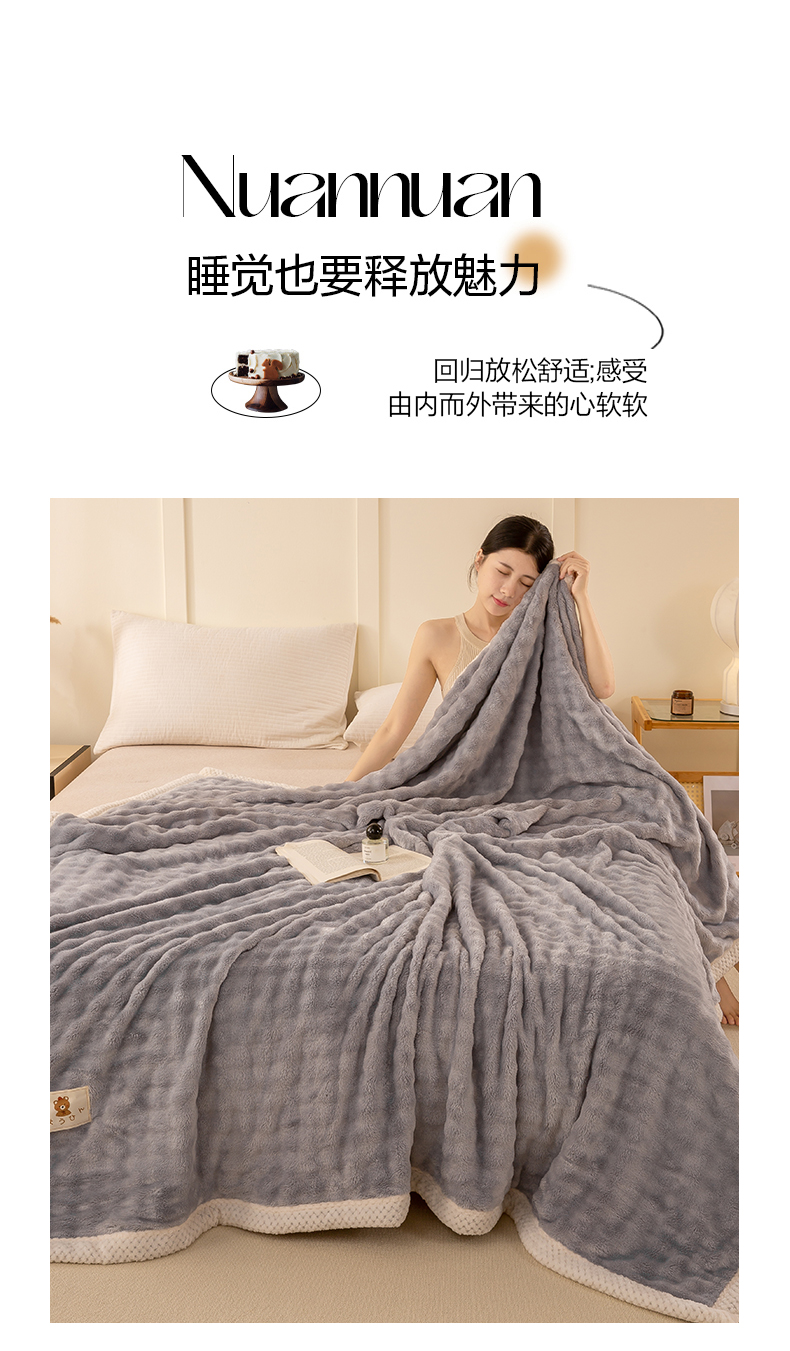 爱彼家纺 2025热门冬季新款玉兔云绒毛毯单盖毯-多主图系列一 玉兔云绒-浅灰