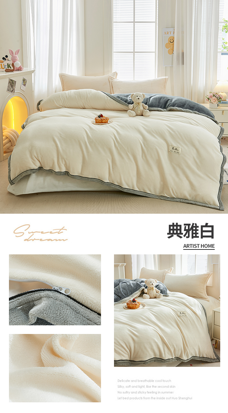 商品名称:天之澜家纺 2025新款多功能牛奶绒单被套盖毯(不含被芯) 典雅白