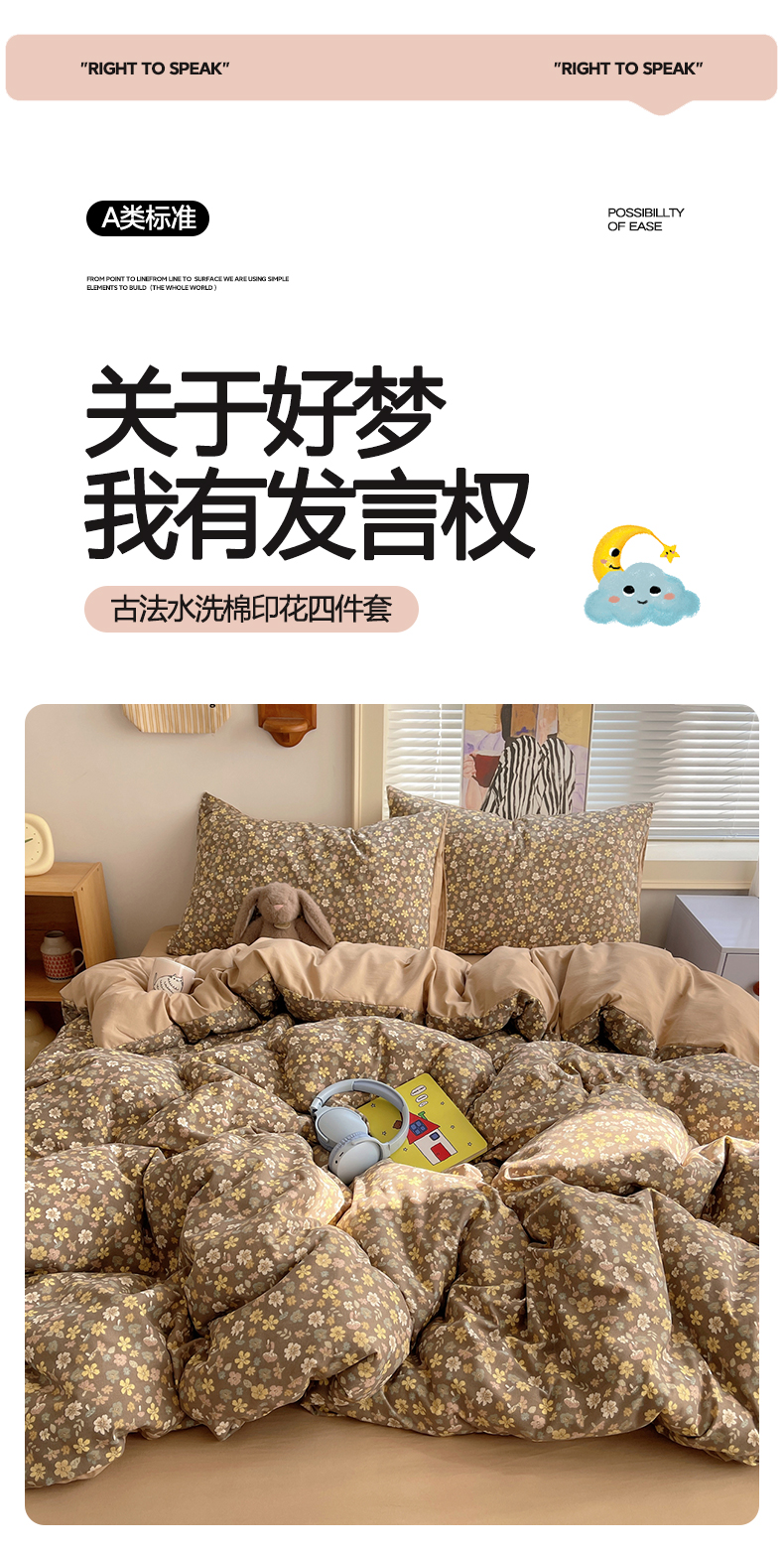 当前位置: 91家纺网 > 商品网购 > 床品套件 > 四件套 > 水洗棉四件套 > 星禾优选 2025新款A类仿棉四件套古法水洗棉小清新印花四件套单被套系列(提供买家秀) 复古小花