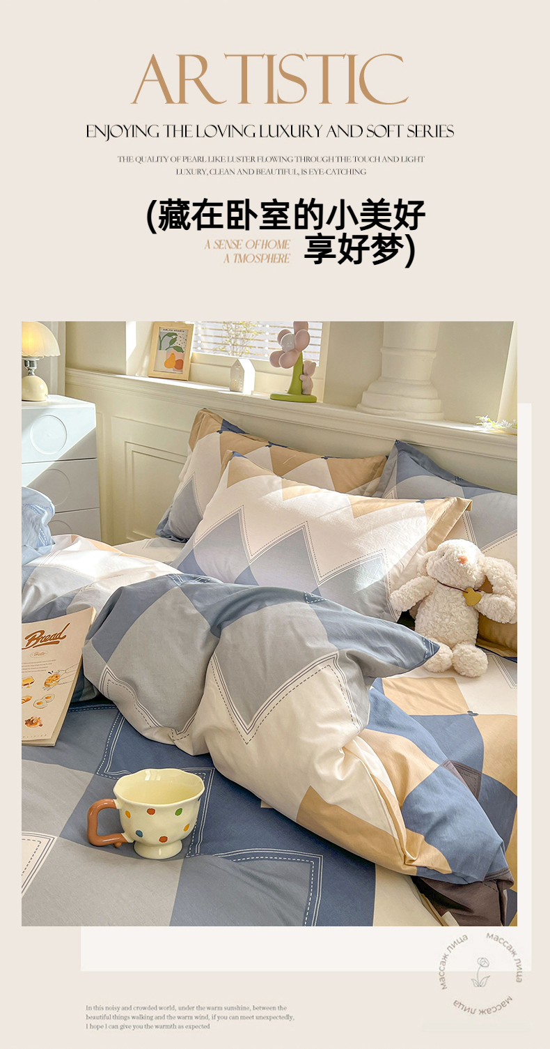当前位置: 91家纺网 > 商品网购 > 床品套件 > 四件套 > 全棉普通四件套 > 名优家纺 2026新款12868全棉小清新印花四件套单品系列-四件套 几何飞船