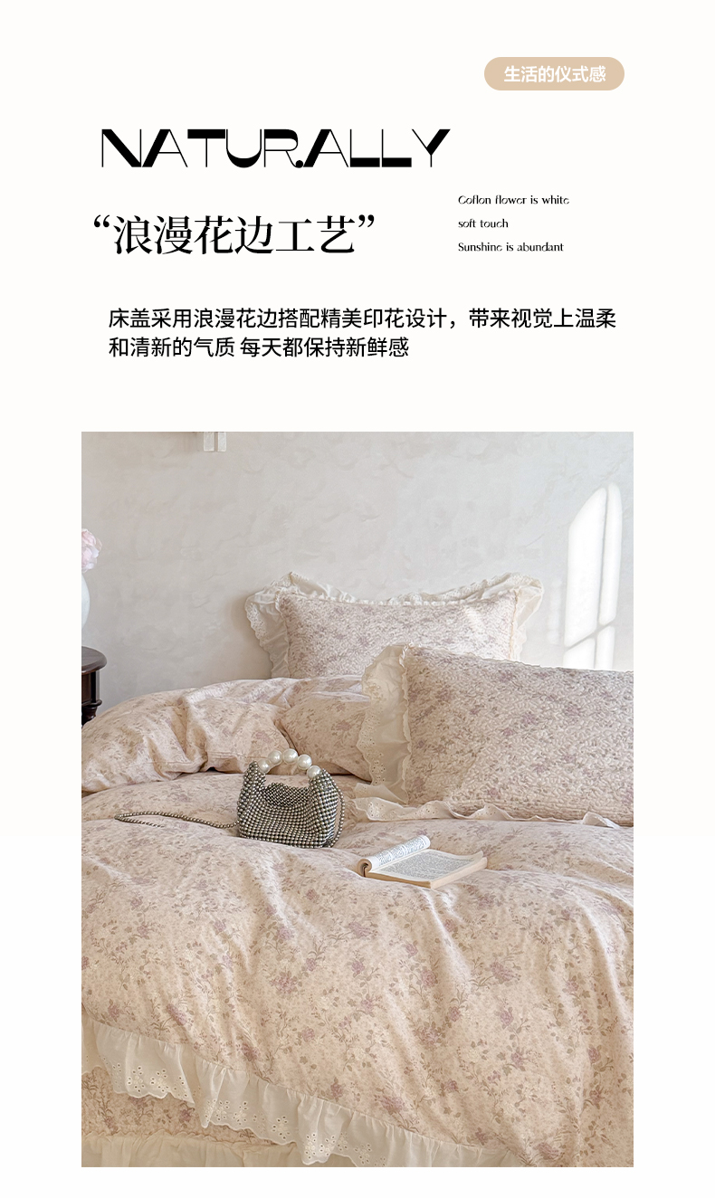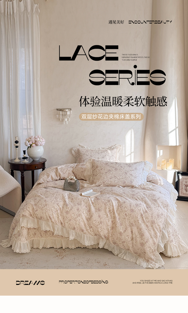 (总)琳可家居 2026新款60S长绒棉花边床盖A类双面全棉高温水洗-蝶恋系列,蝶恋-暖白,蝶恋-卡其,蝶恋-雾粉,组合
