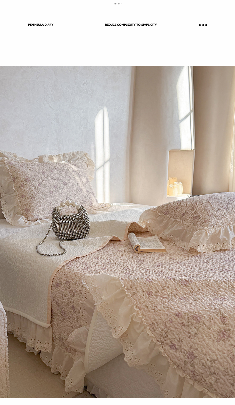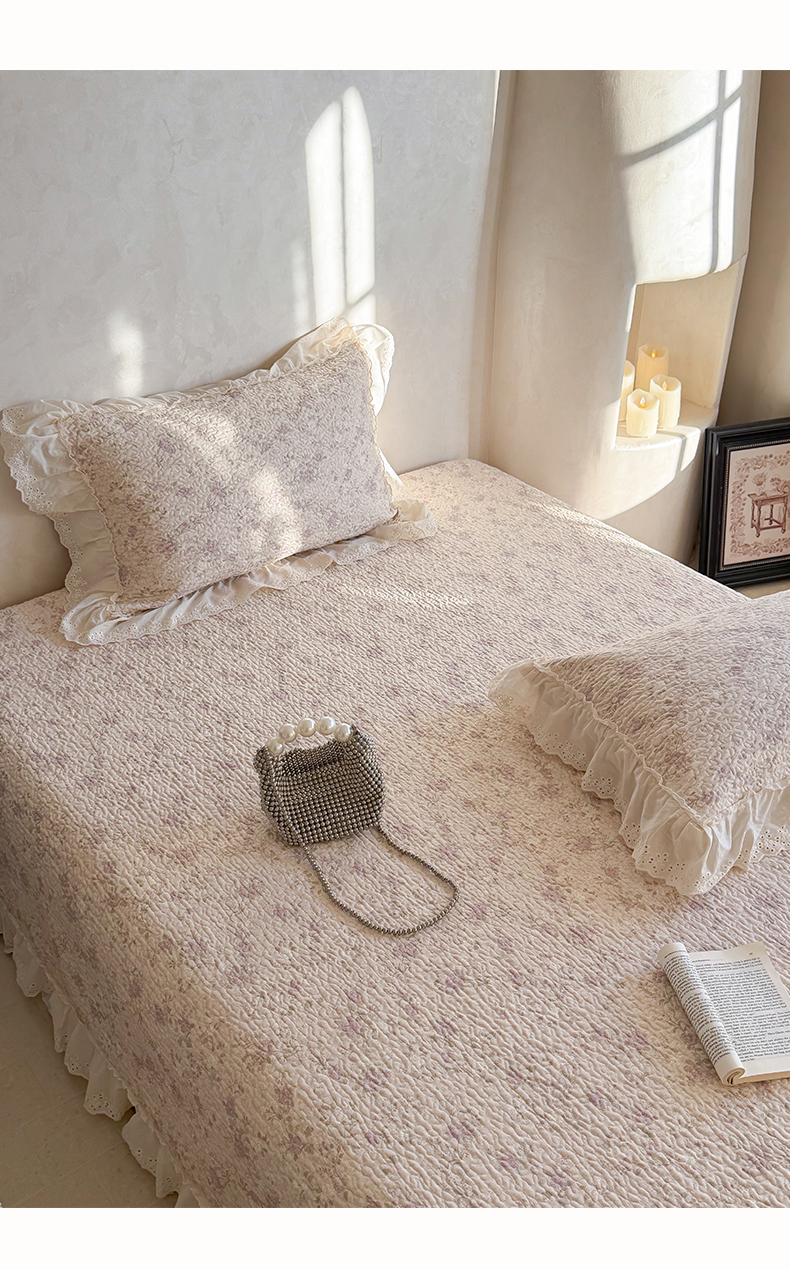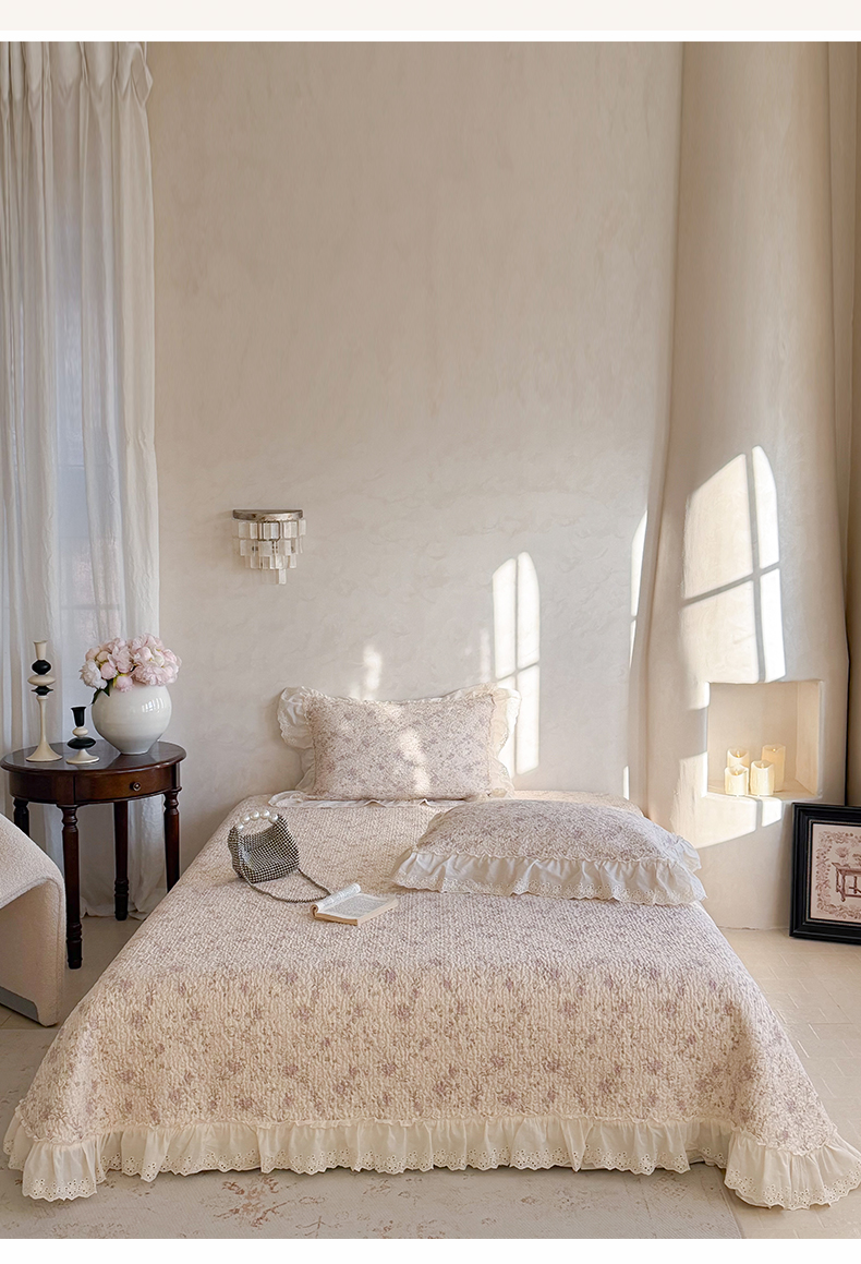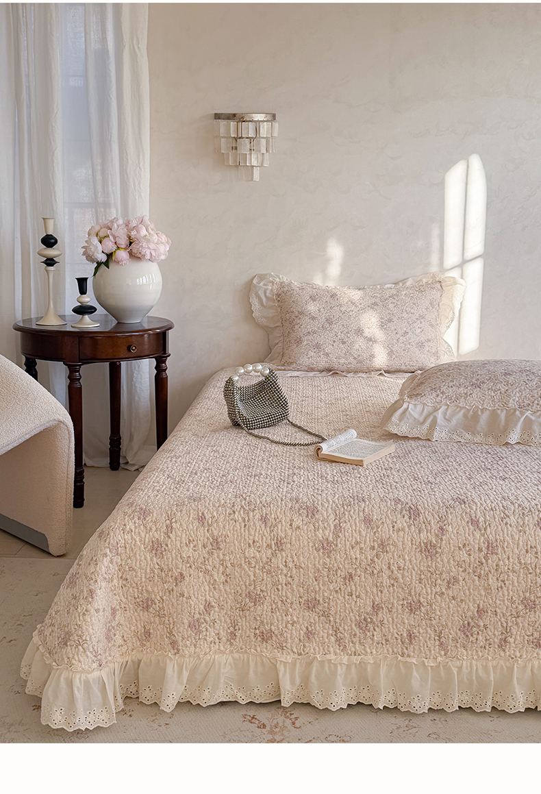 琳可家居 2026新款印花全棉双层纱床盖棉布花边高温水洗A类标准夹棉可机洗 花之语