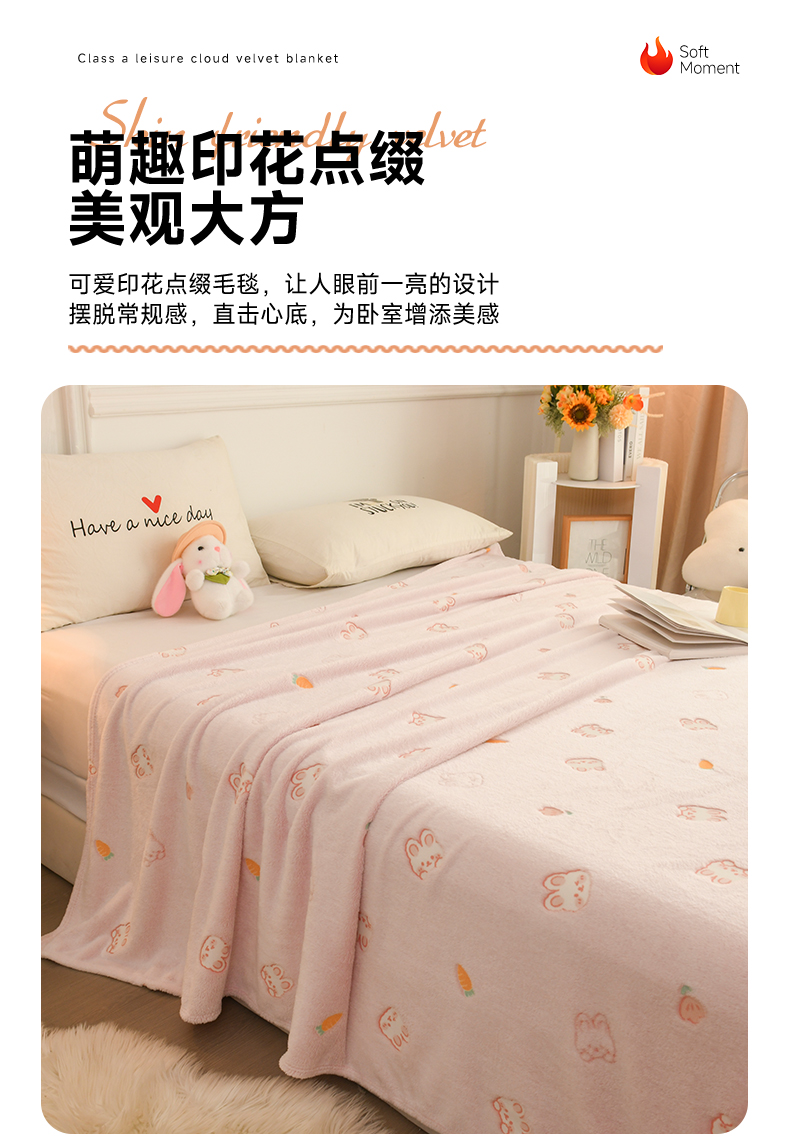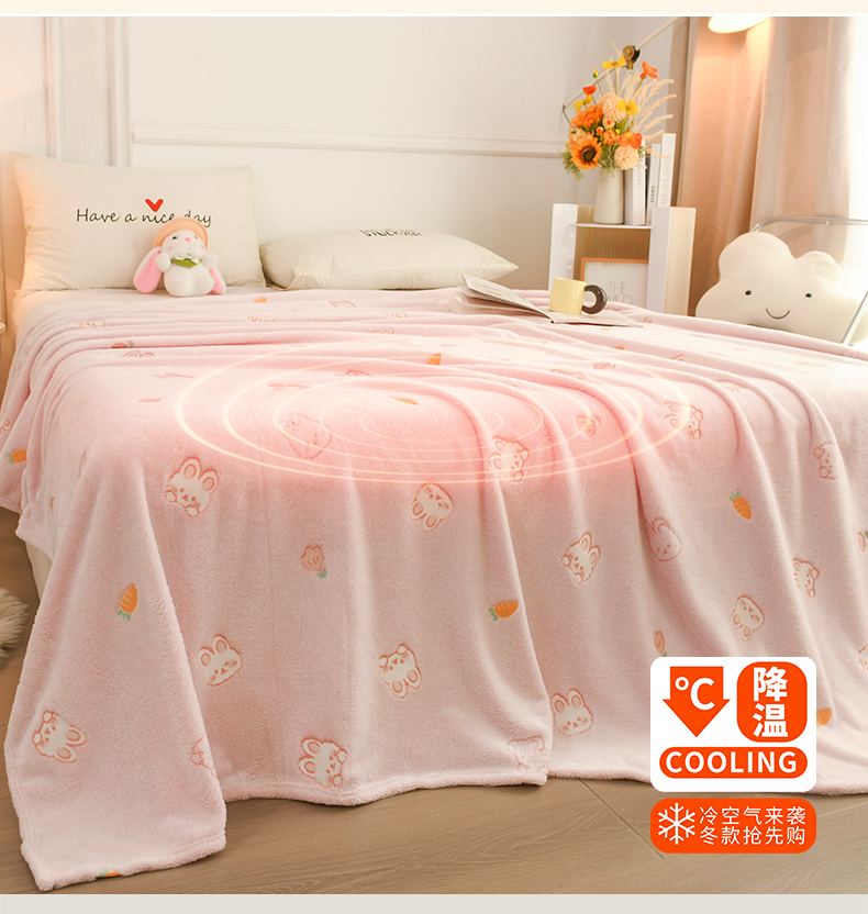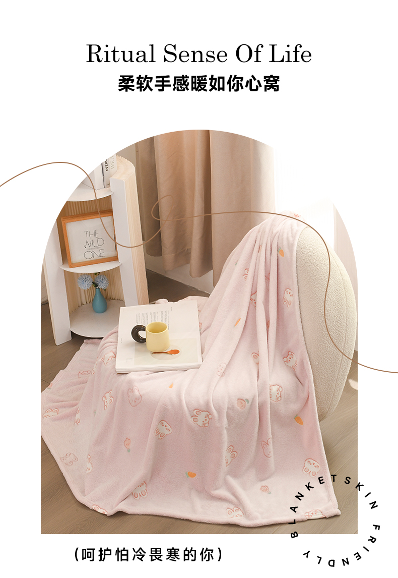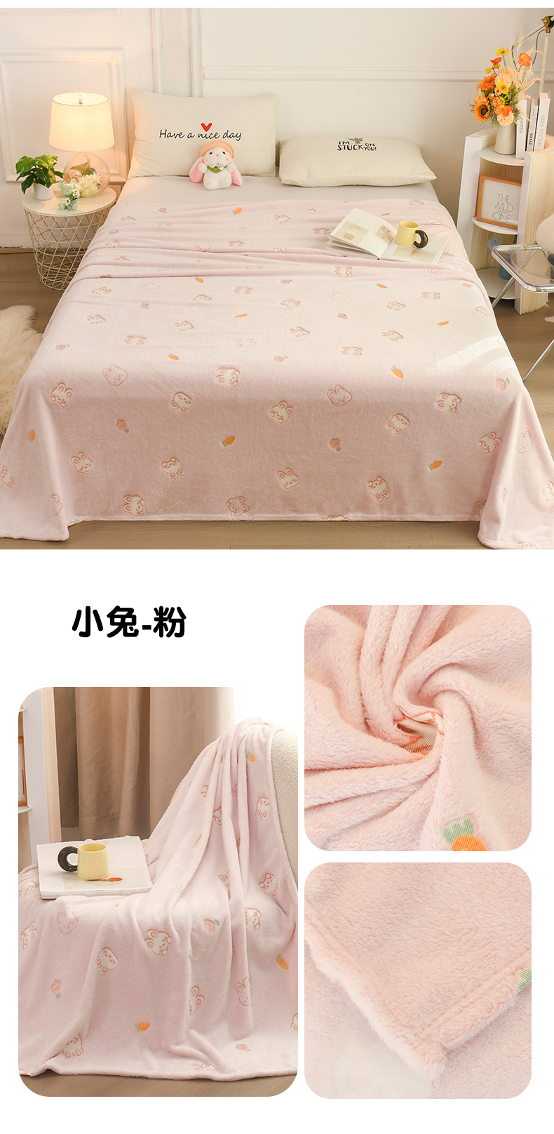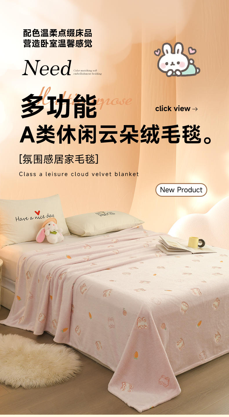 商品名称:恋绒家纺 2025新款云朵绒毛毯毯子多铺盖多功能盖毯绒 小兔-粉