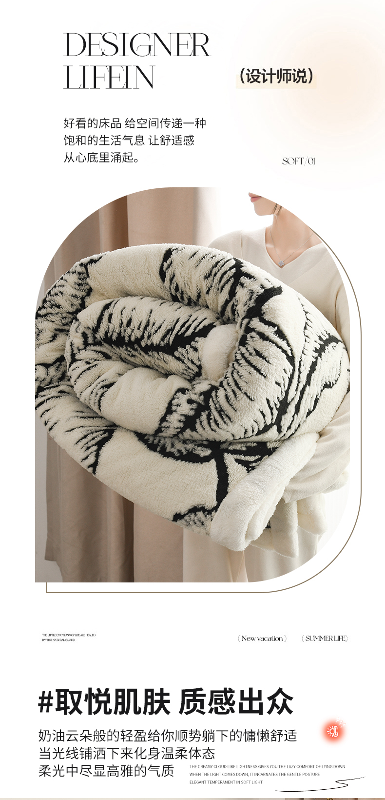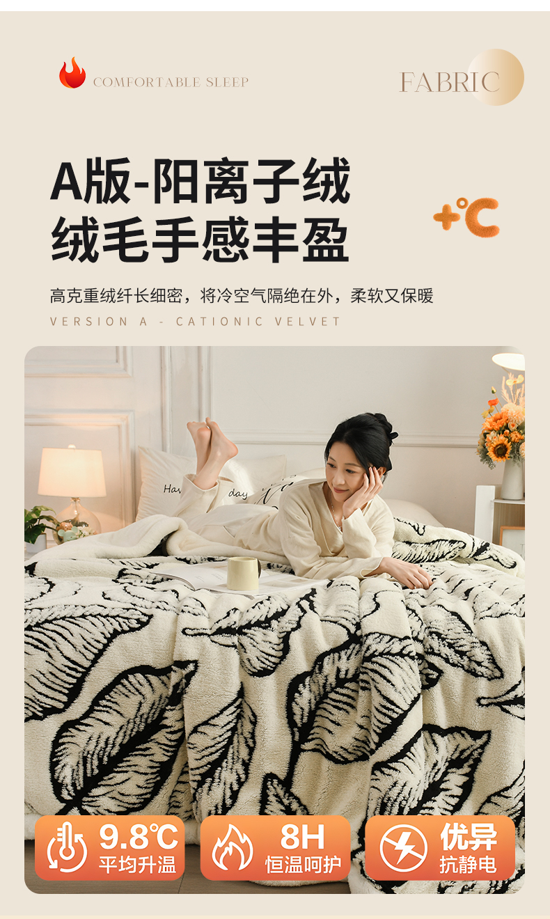 (总)恋绒家纺 2025新款阳离子三层舒棉绒毛毯毯子,爱心结,斑马纹,复古花枝,蕉叶白,蕉叶绿,幕朵,优雅咖,郁金香