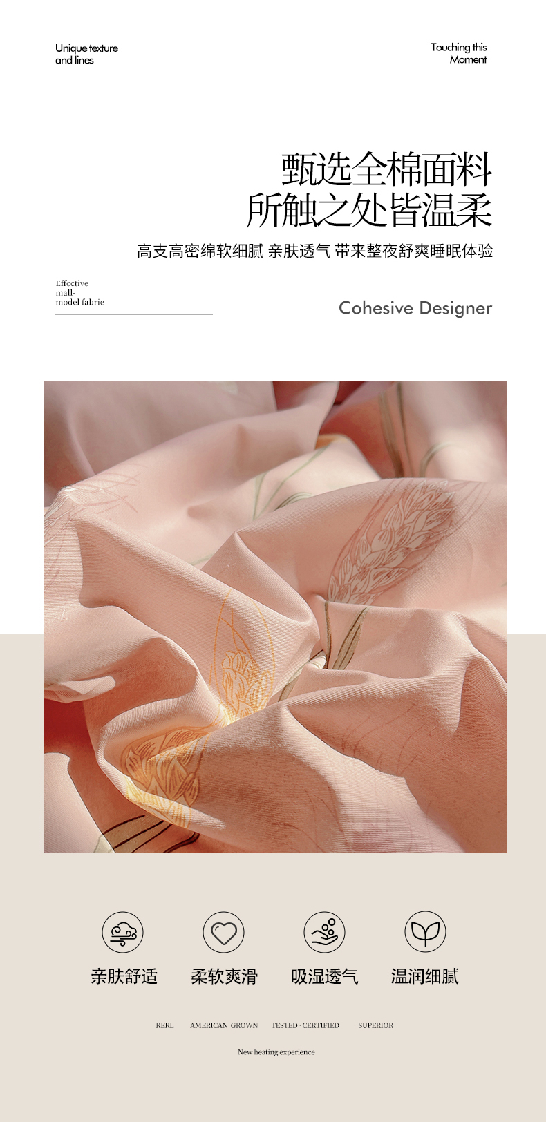 当前位置: 91家纺网 > 商品网购 > 床品套件 > 四件套 > 全棉普通四件套 > 艾迪尚家纺 2026新款133X76宽幅全棉纯棉印花四件套(有单品 可定制) 秋言—粉