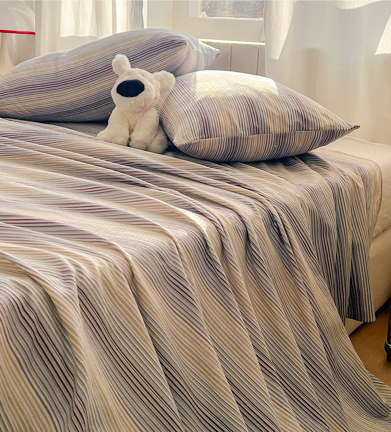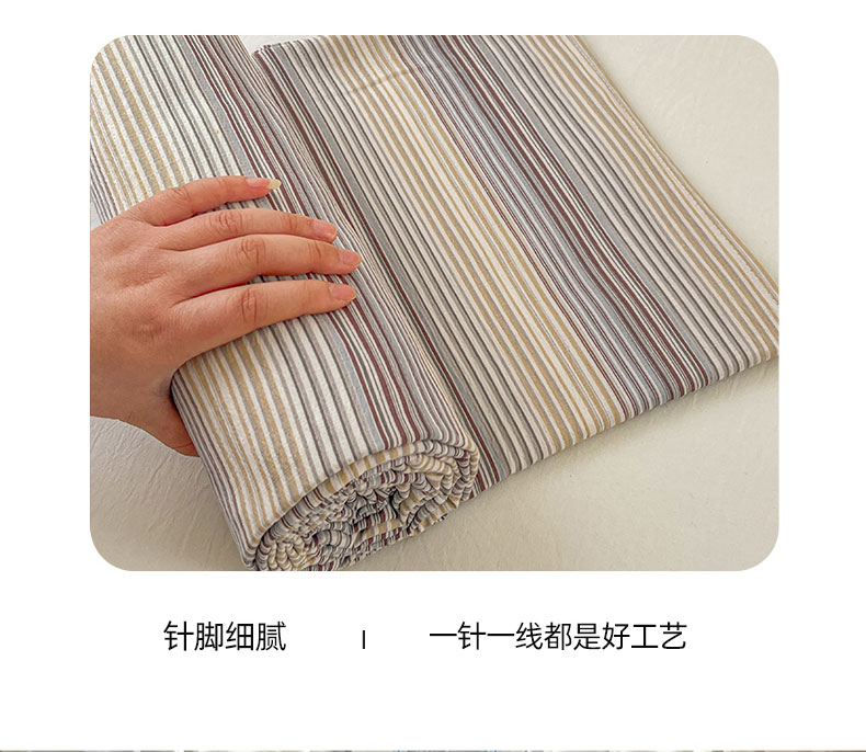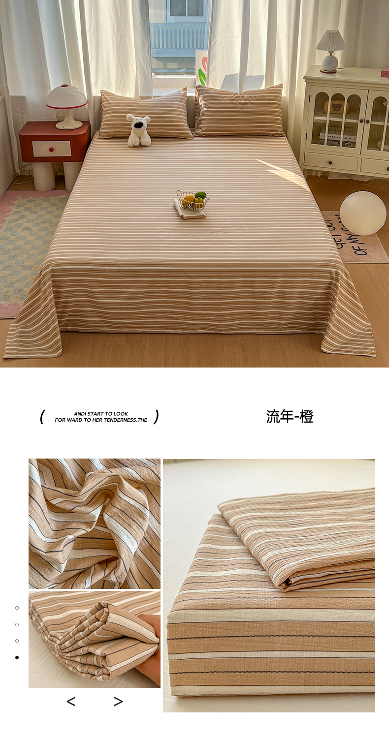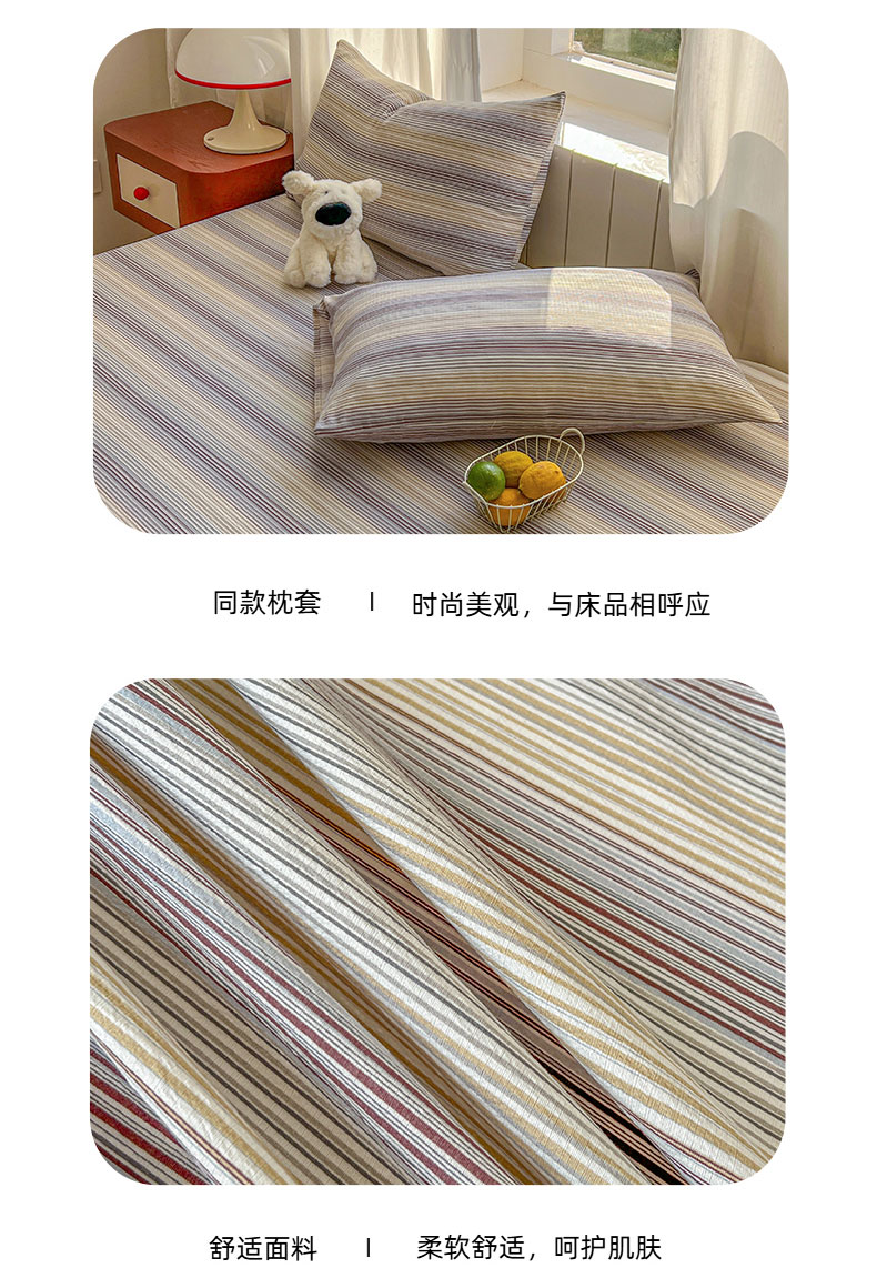 • 91家纺网 家纺一手货源 找家纺 (总)思诺羽床笠 2026新款亲肤云朵双层纱无印风水洗棉三件套四件套,浅咖条,布林灰,海蓝条,黄绿条,灰白条,简兮格,科隆绿格,米兰格,奶霜条,浅蓝条,映像格,云纱条