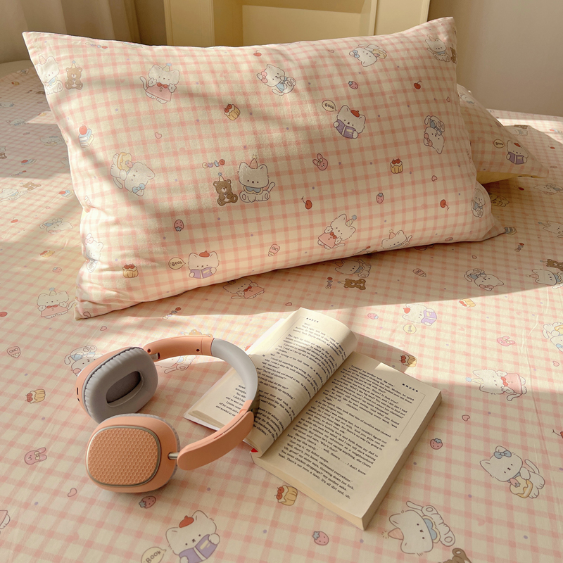 商品名称:六巷胡同 2026新款40支全棉13070卡通单品枕套 猫咪甜甜圈