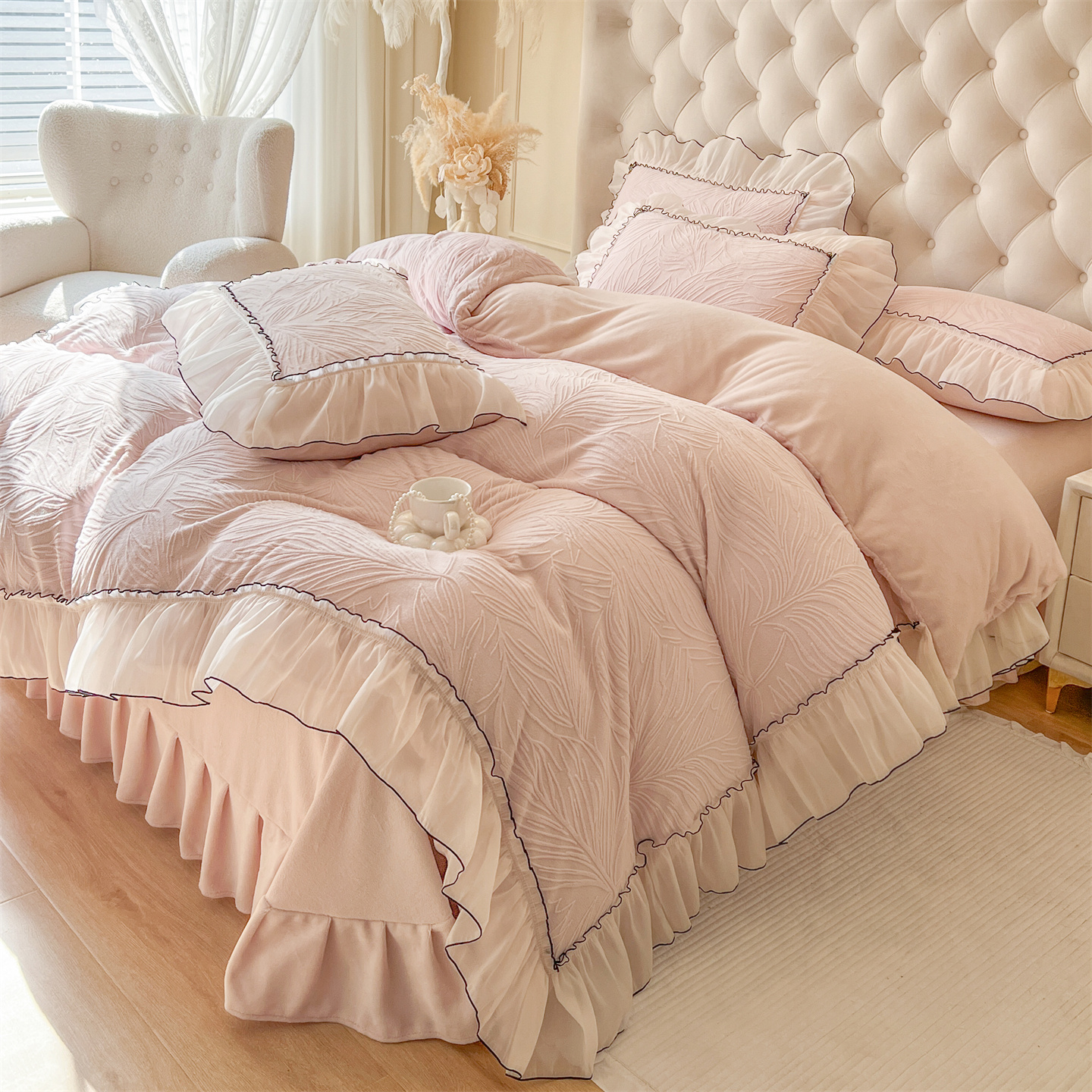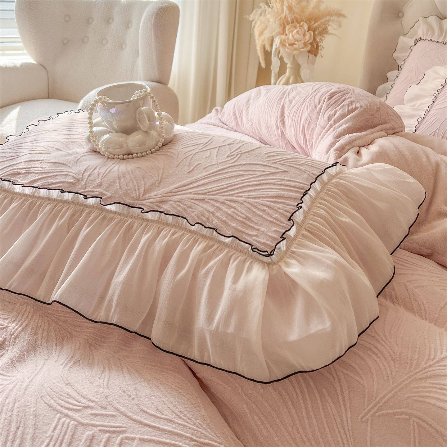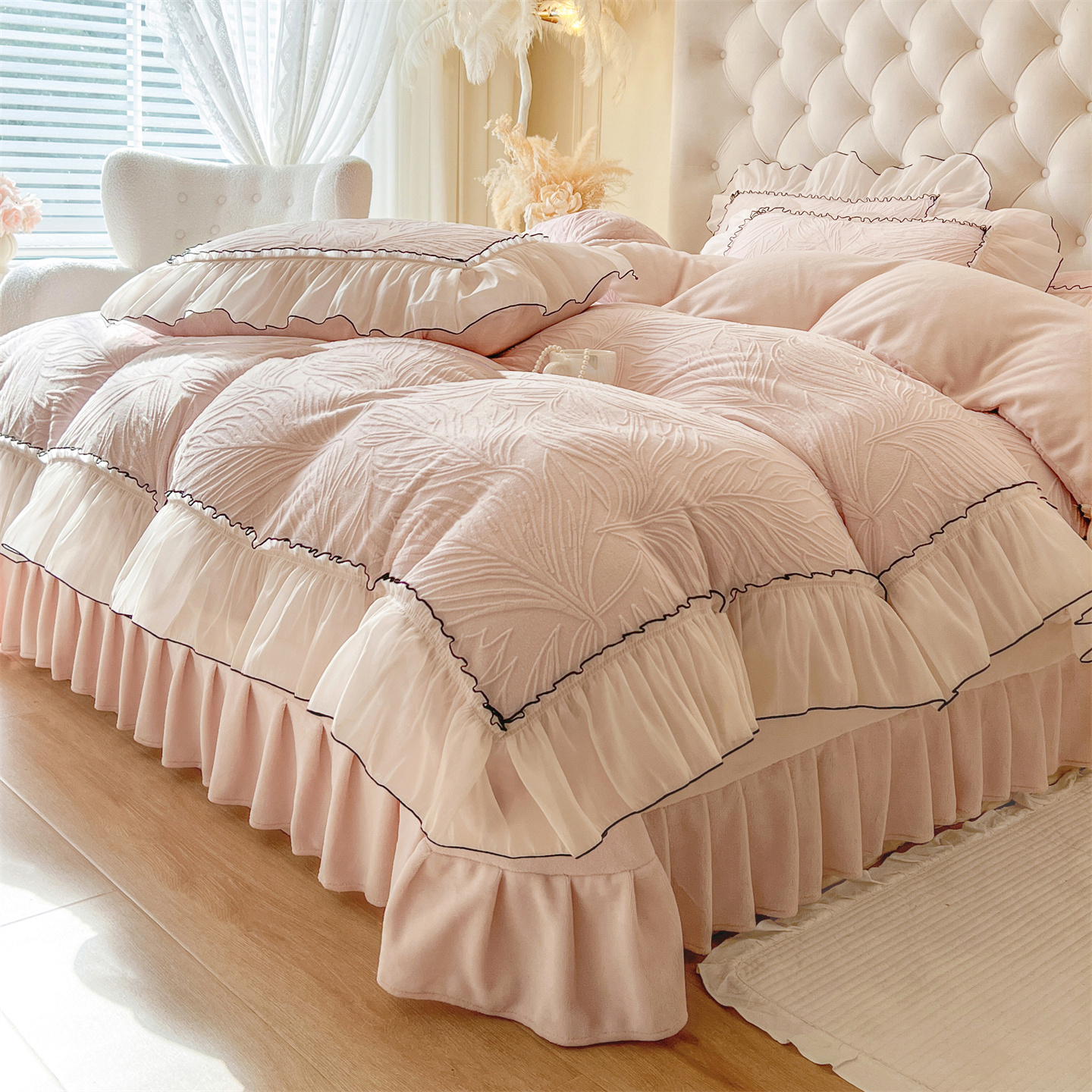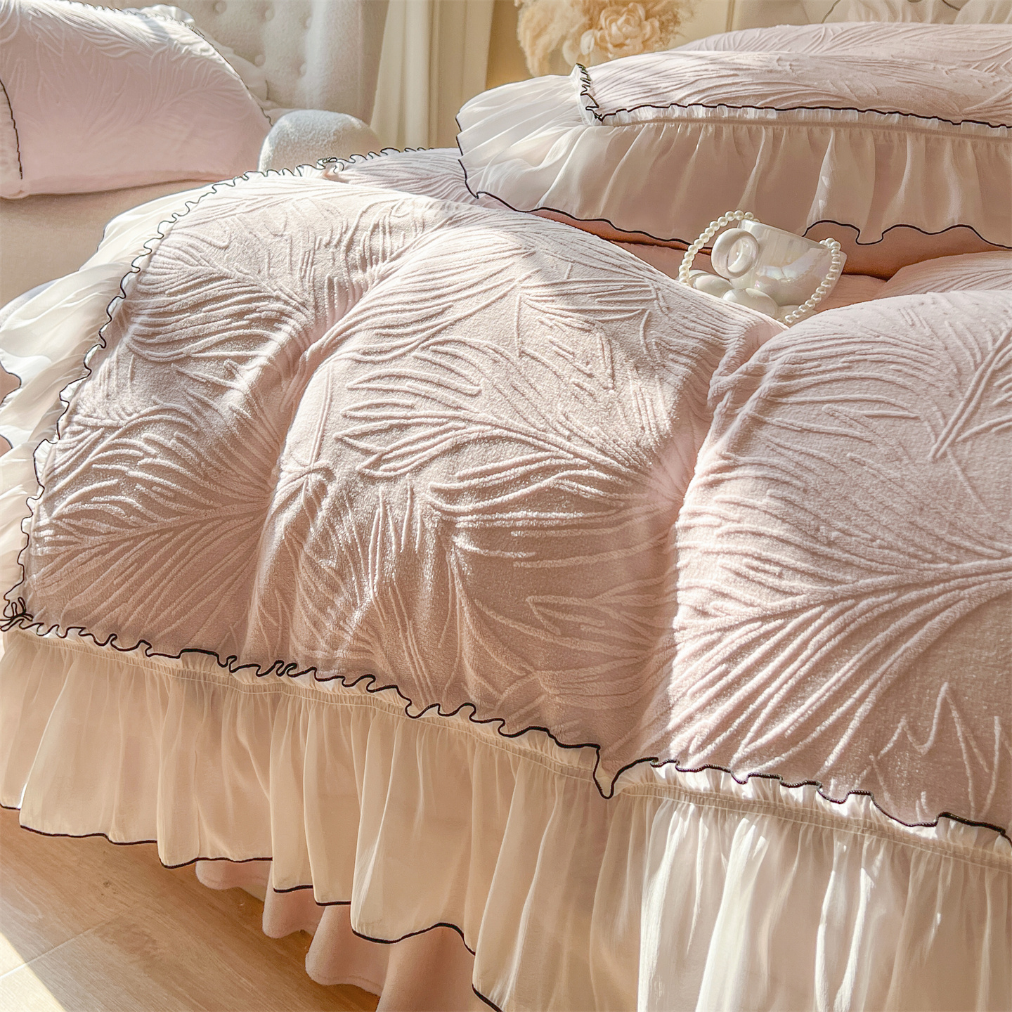 (总)满座家居 2025新款清新唯美木耳边加厚牛奶绒四件套雕花绒四件套,艾莎 粉,雏菊晨露 粉,田园风景 绿,蝶恋花 粉,邂逅,安妮 粉