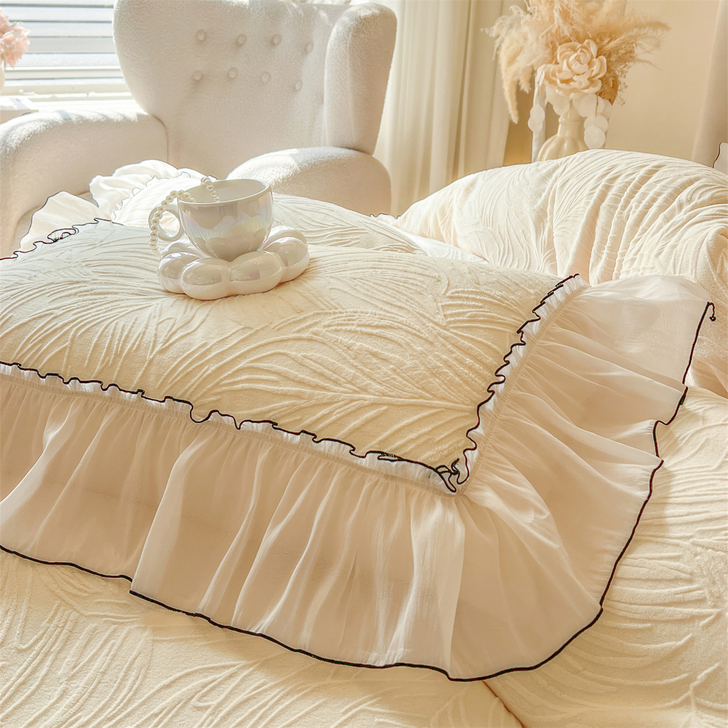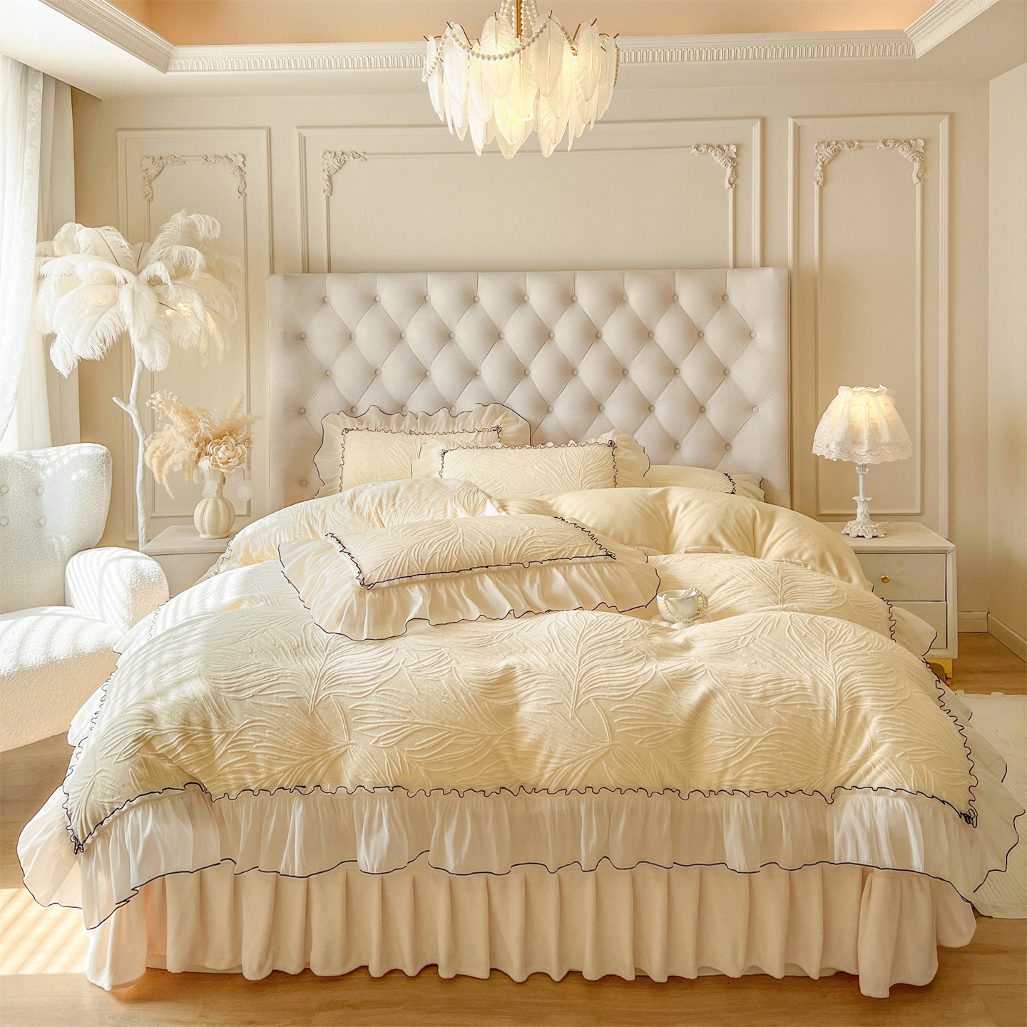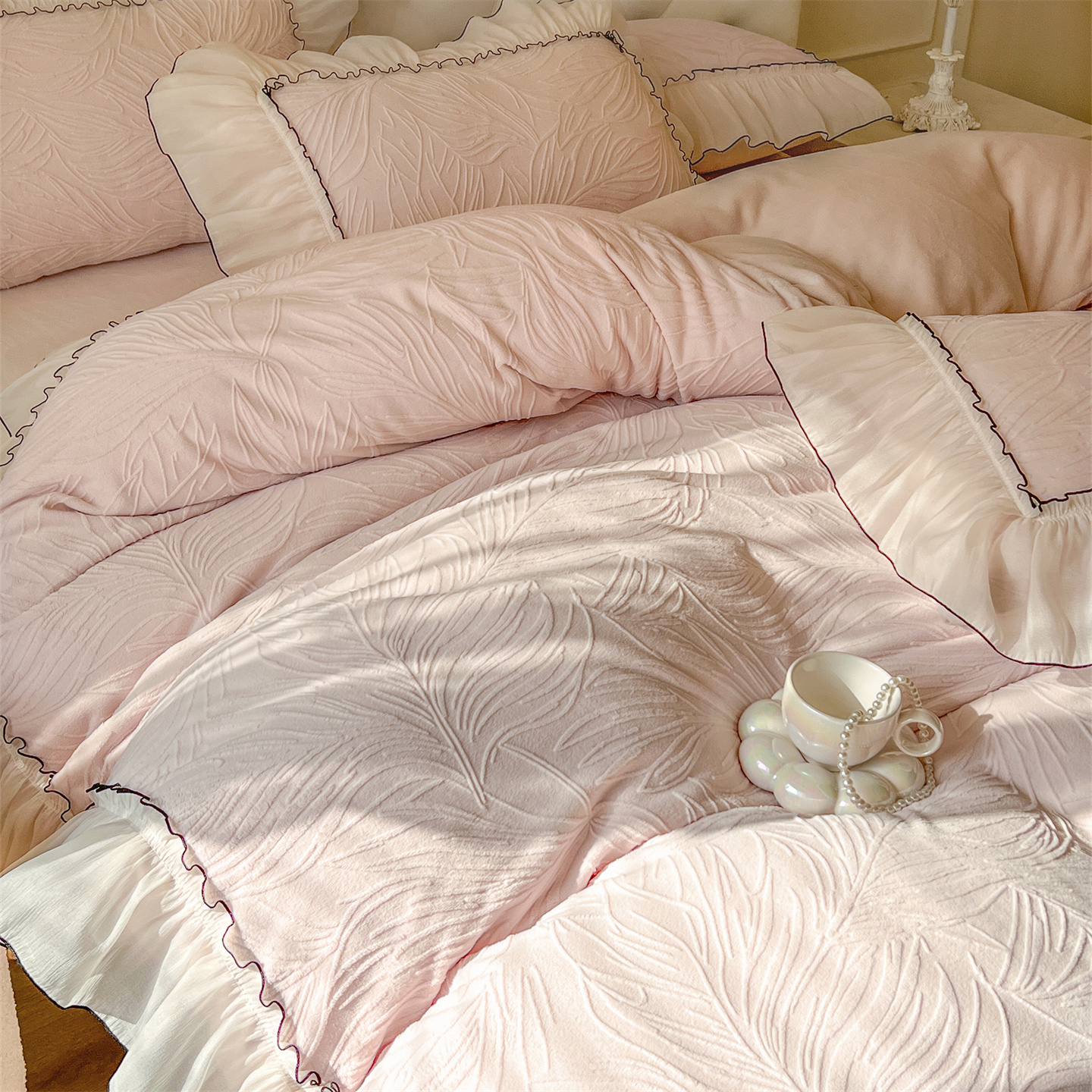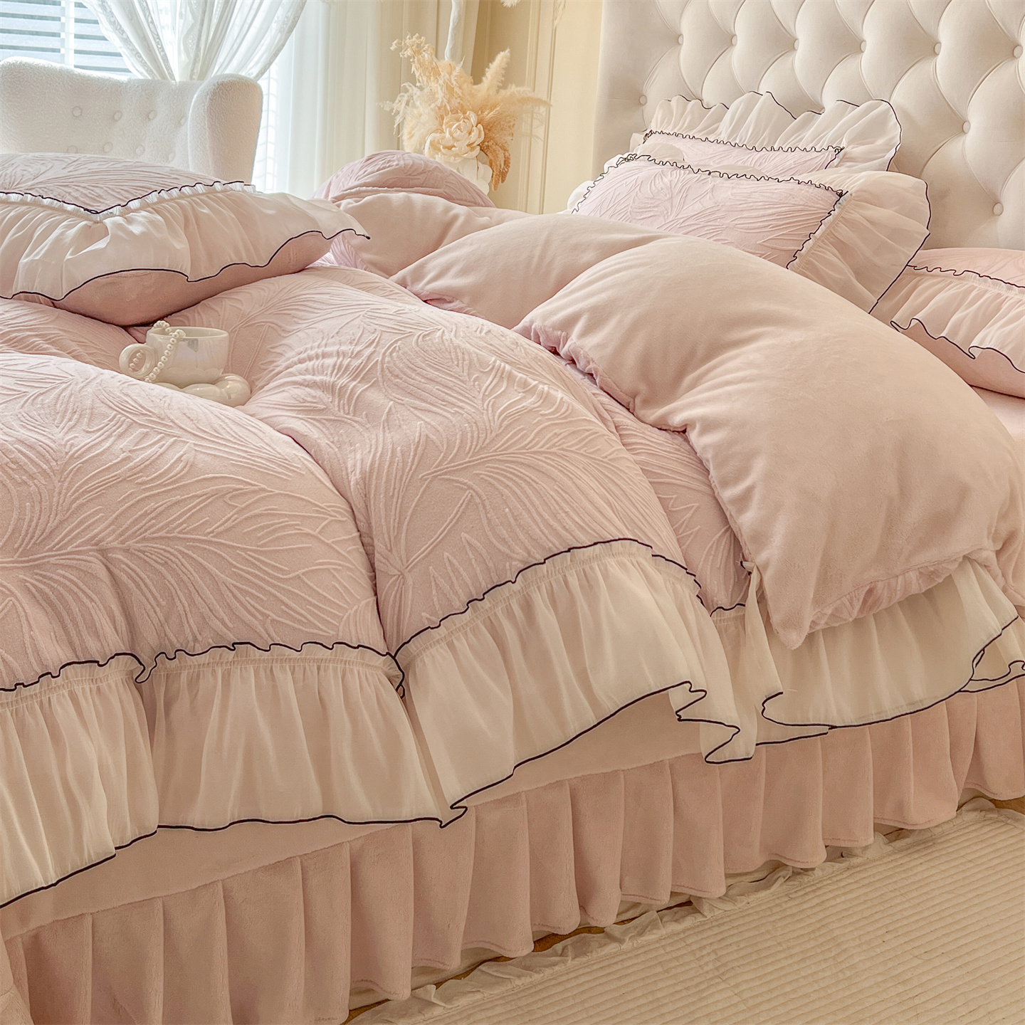 (总)满座家居 2025新款清新唯美木耳边加厚牛奶绒四件套雕花绒四件套,艾莎 粉,雏菊晨露 粉,田园风景 绿,蝶恋花 粉,邂逅,安妮 粉