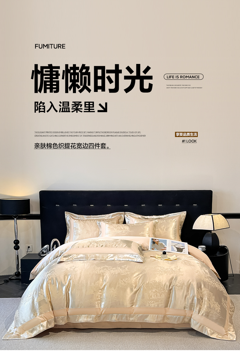 当前位置: 91家纺网 > 商品网购 > 床品套件 > 四件套 > 其它四件套 > 博纳家纺 2026新款亲肤棉色织提花宽边四件套-水墨江南 水墨江南-香槟
