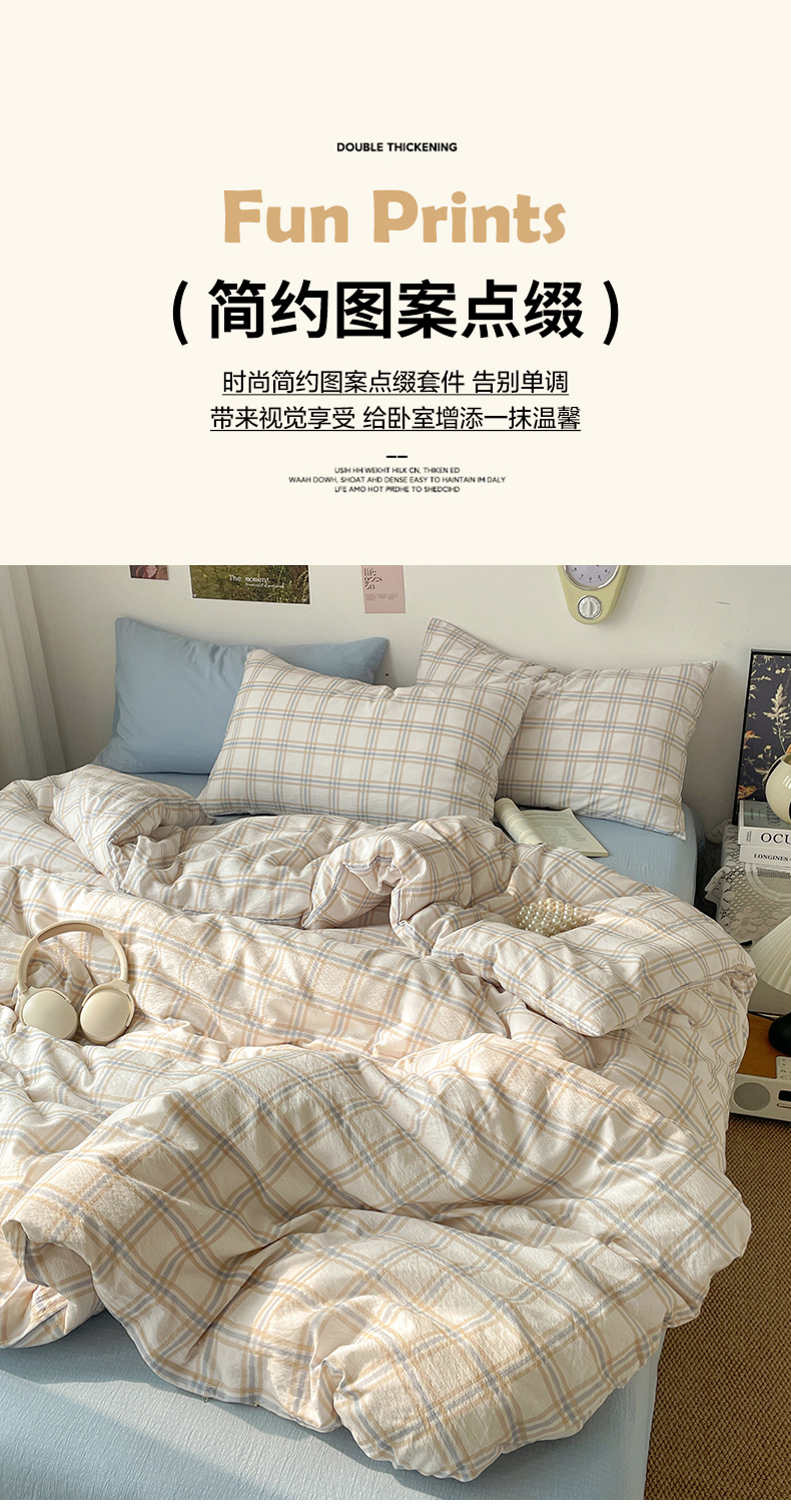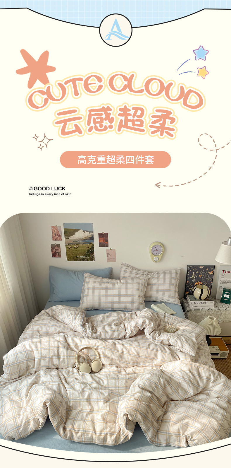 当前位置: 91家纺网 > 商品网购 > 床品套件 > 四件套 > 双层纱四件套 > 海岛哥哥 2026新款双层纱格条系列四件套 奶油云木格