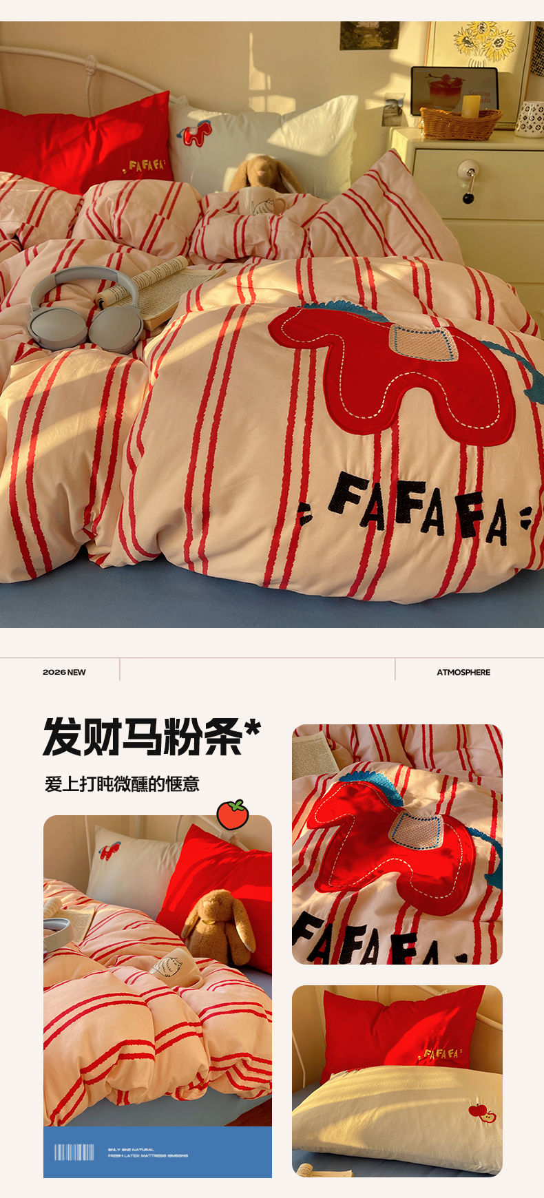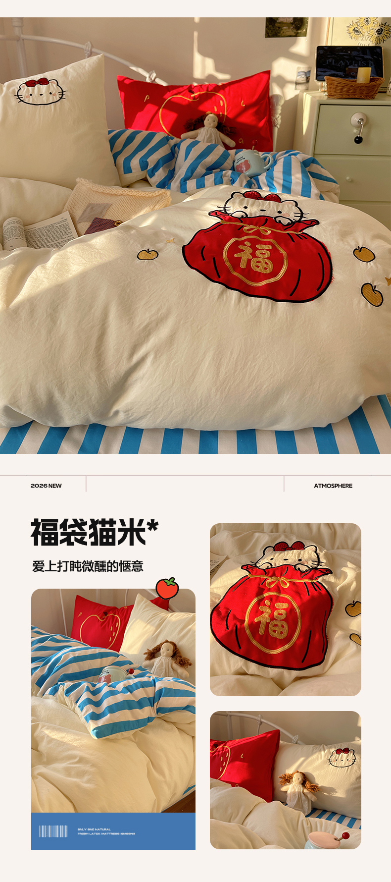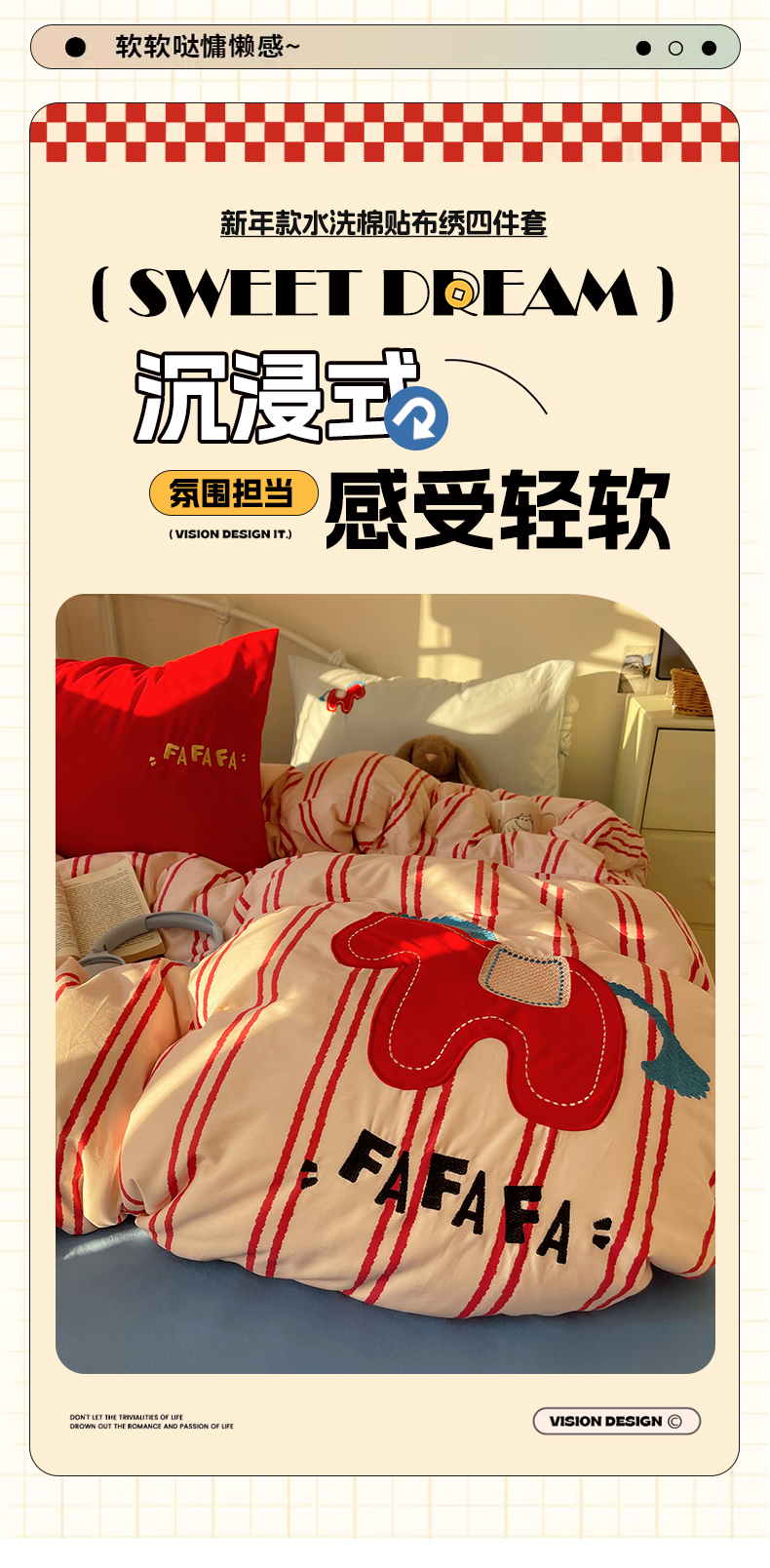 当前位置: 91家纺网 > 商品网购 > 床品套件 > 四件套 > 水洗棉四件套 > (总) 轻奢坊 2026新年款水洗棉贴布绣四件套-旺福