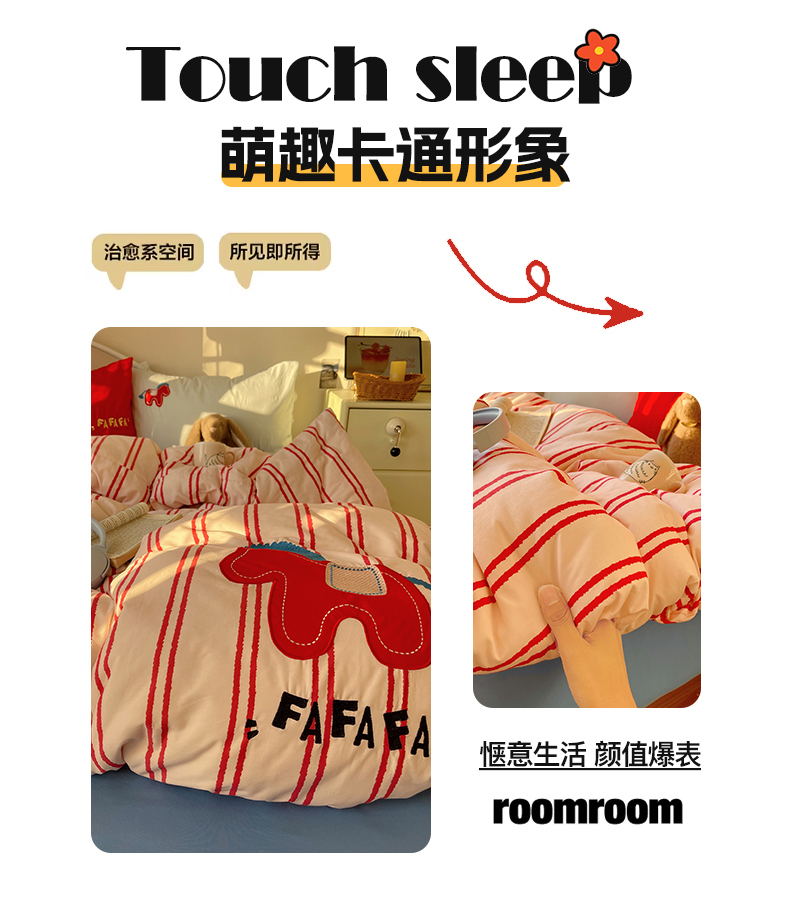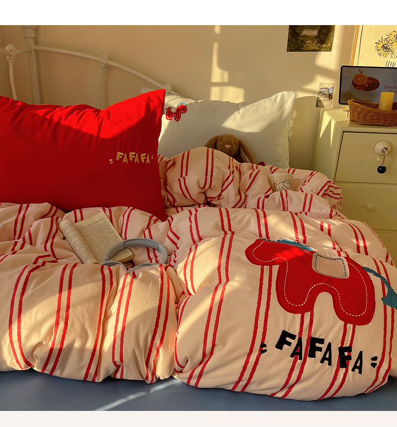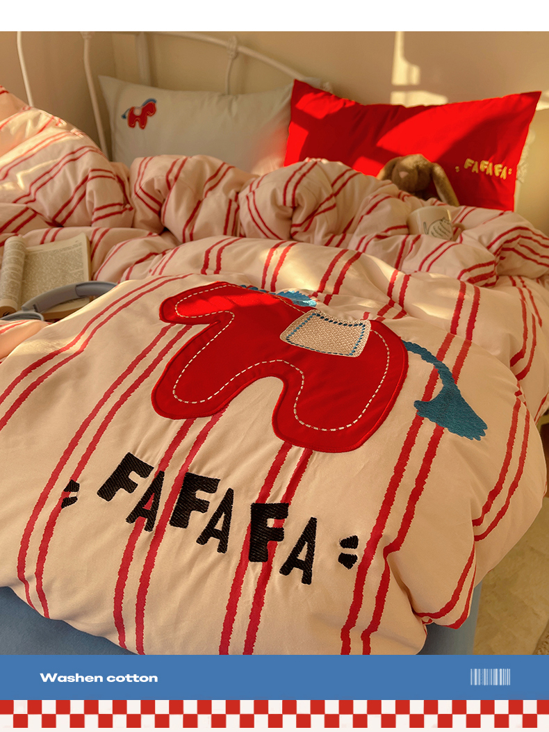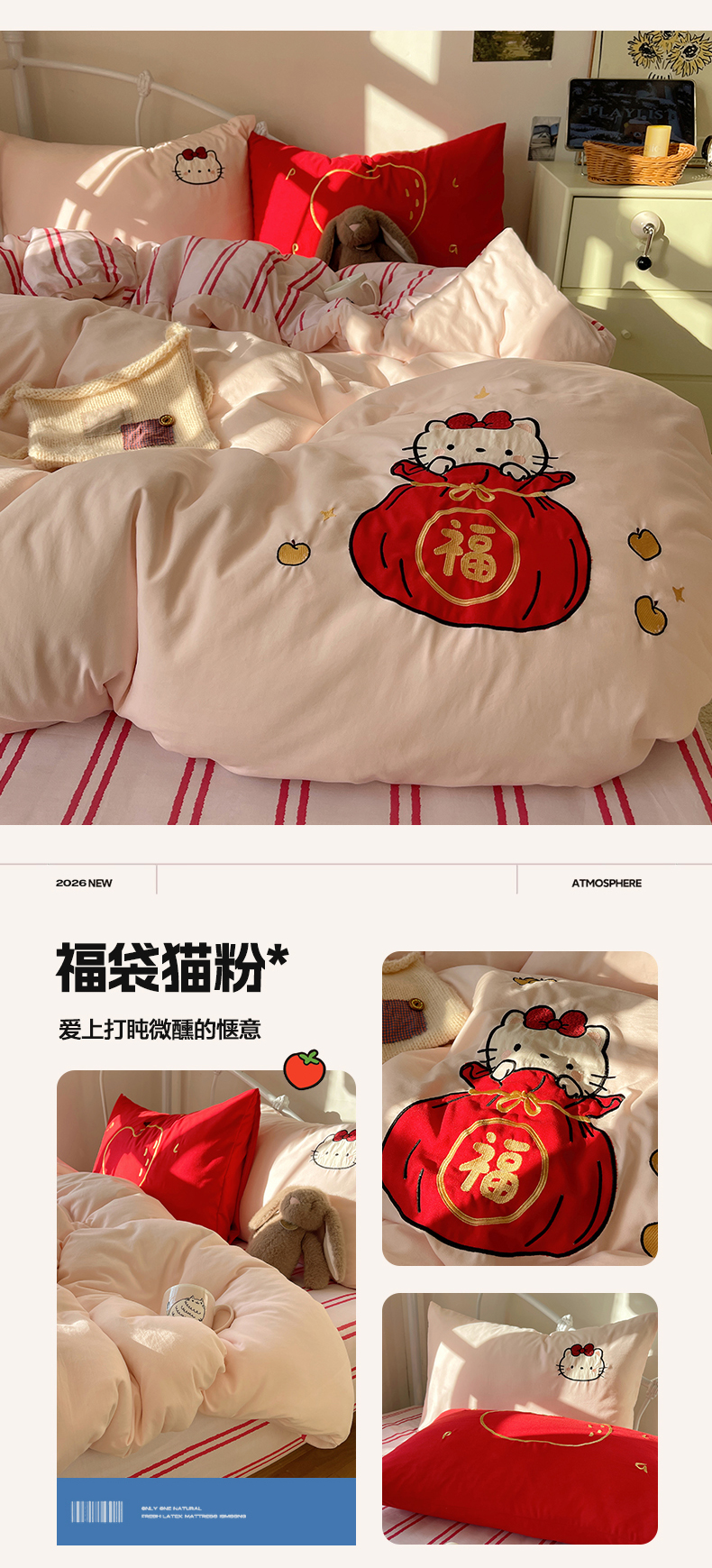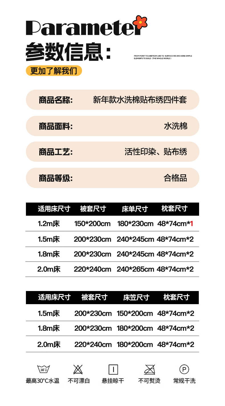 当前位置: 91家纺网 > 商品网购 > 床品套件 > 四件套 > 水洗棉四件套 > (总) 轻奢坊 2026新年款水洗棉贴布绣四件套-旺福