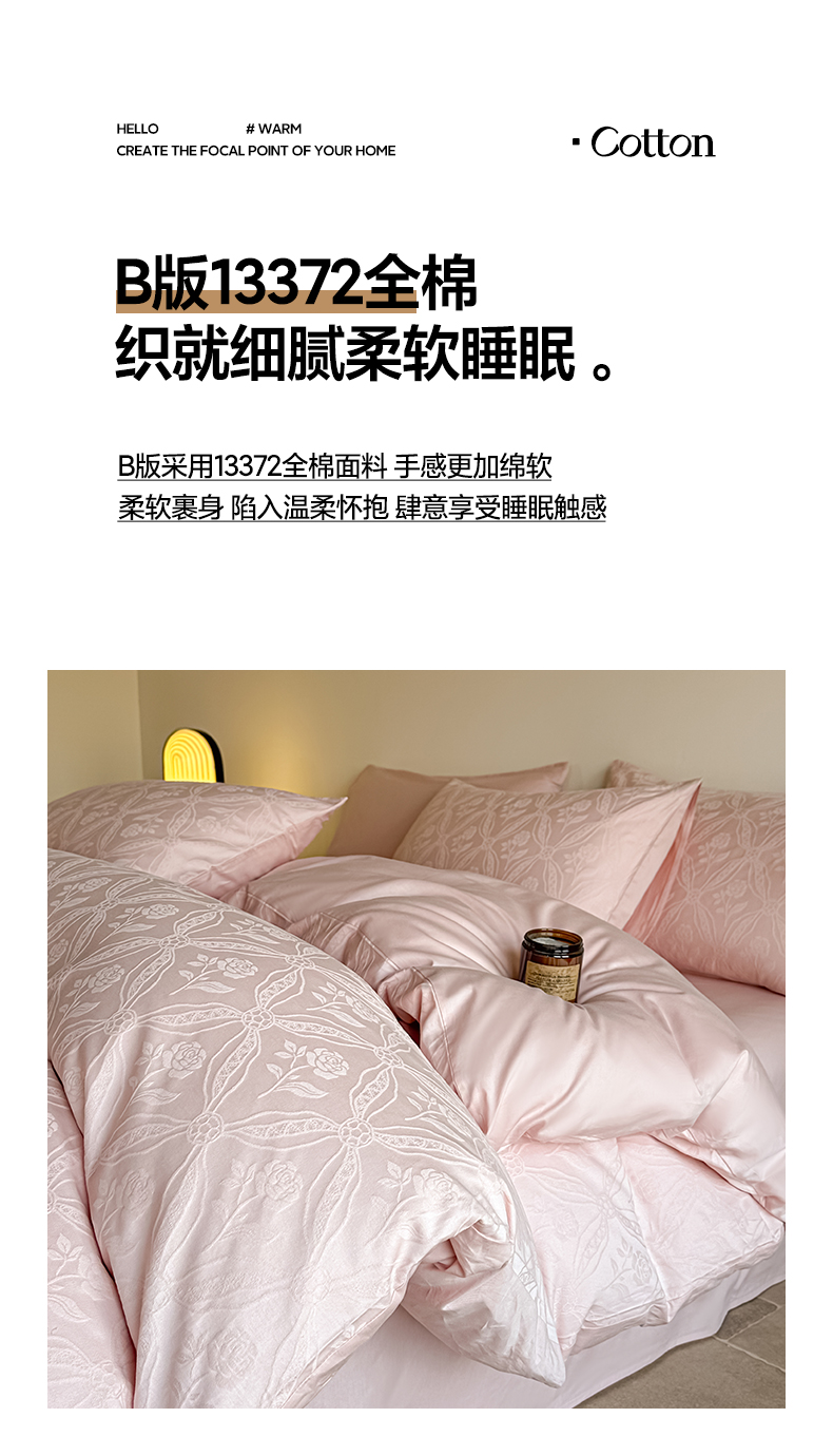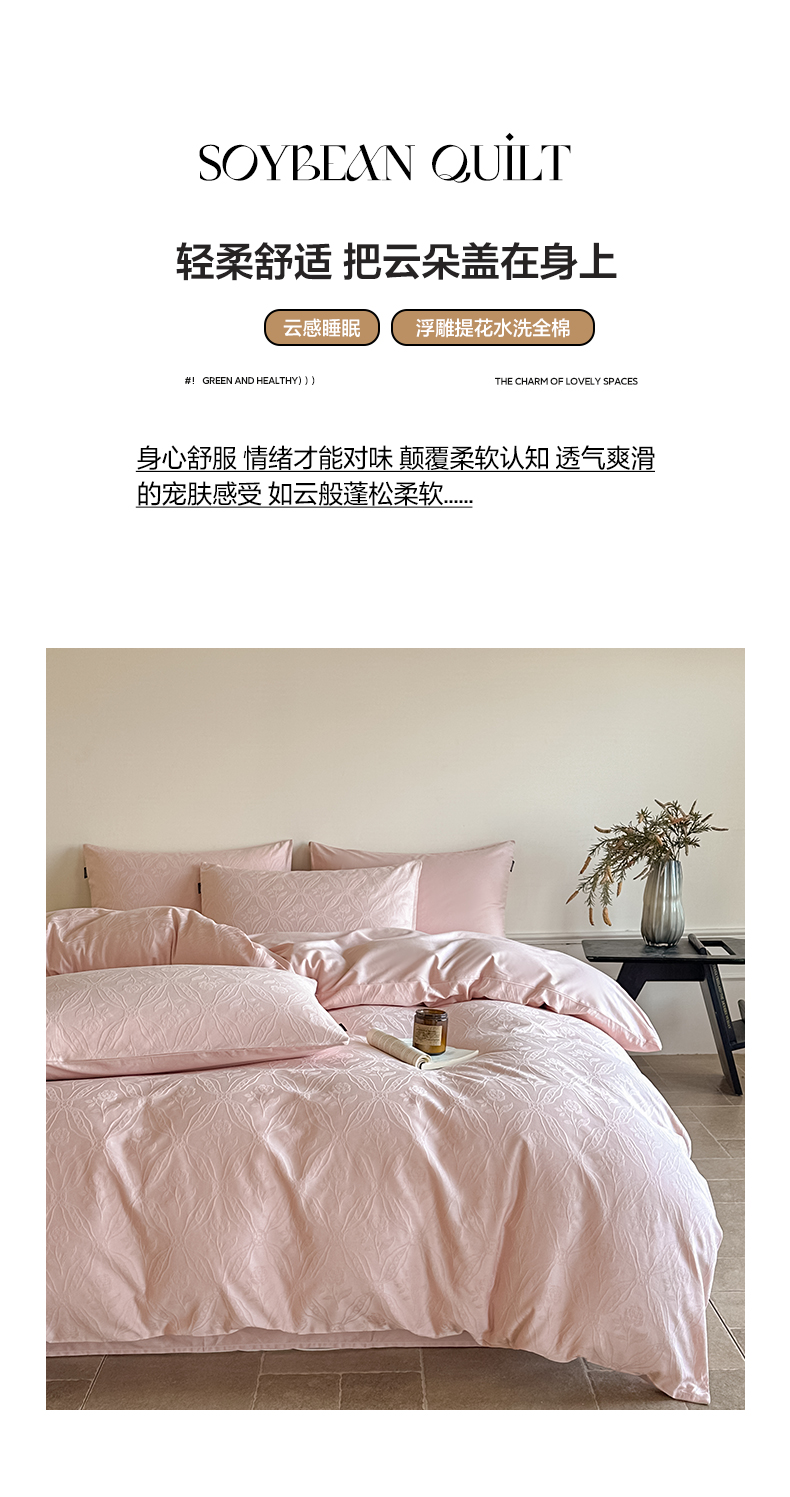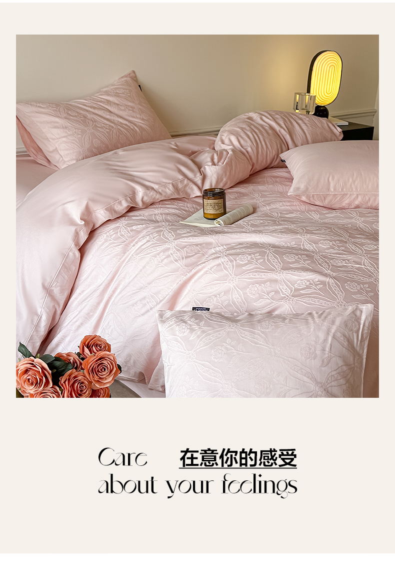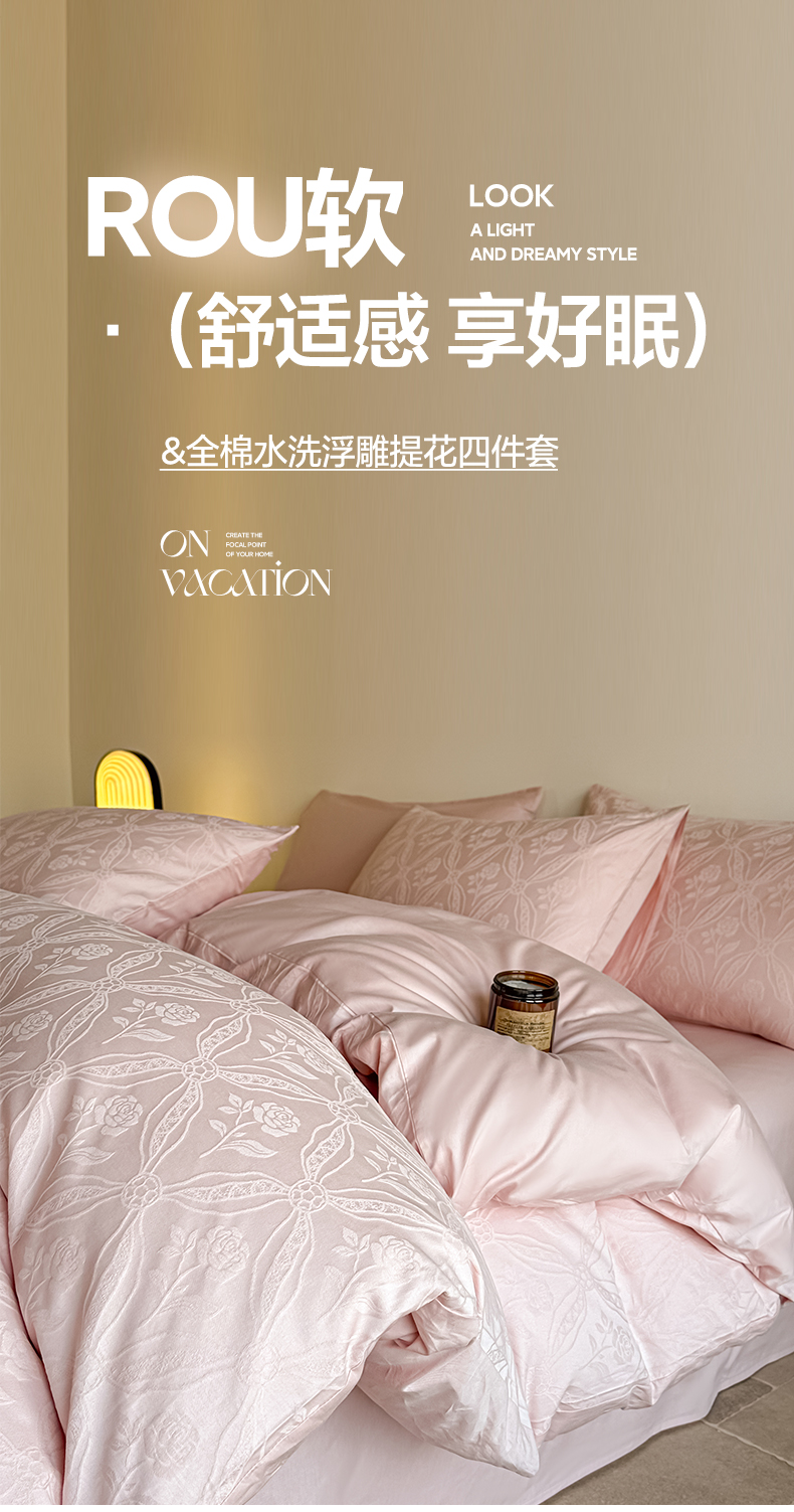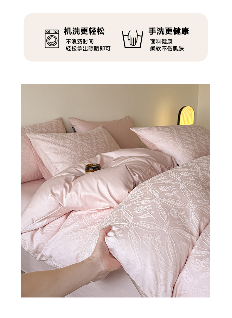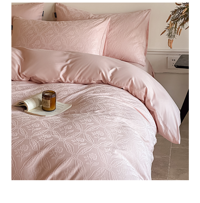 商品名称:如一 2026新款60S全棉水洗提花立体厚织浮雕四件套 暗香-唯美粉