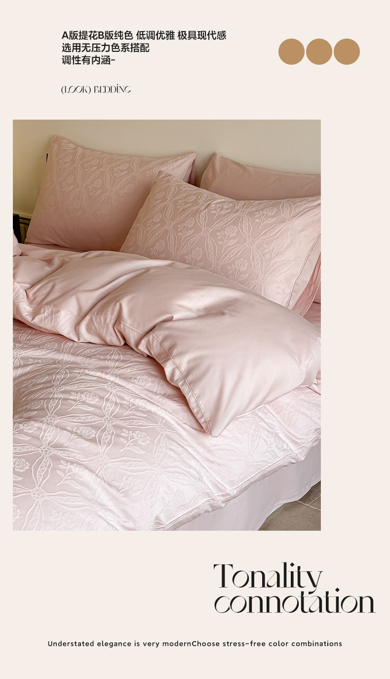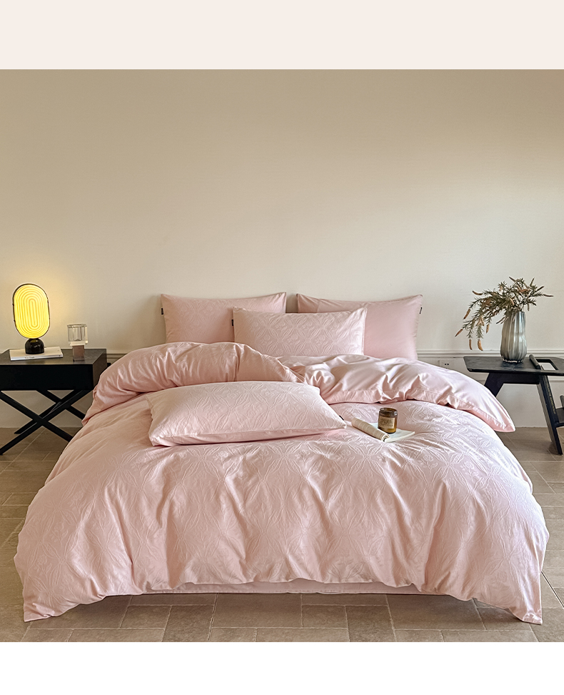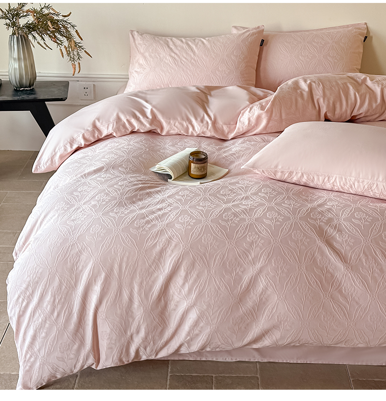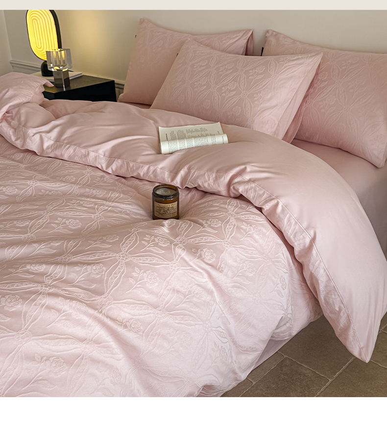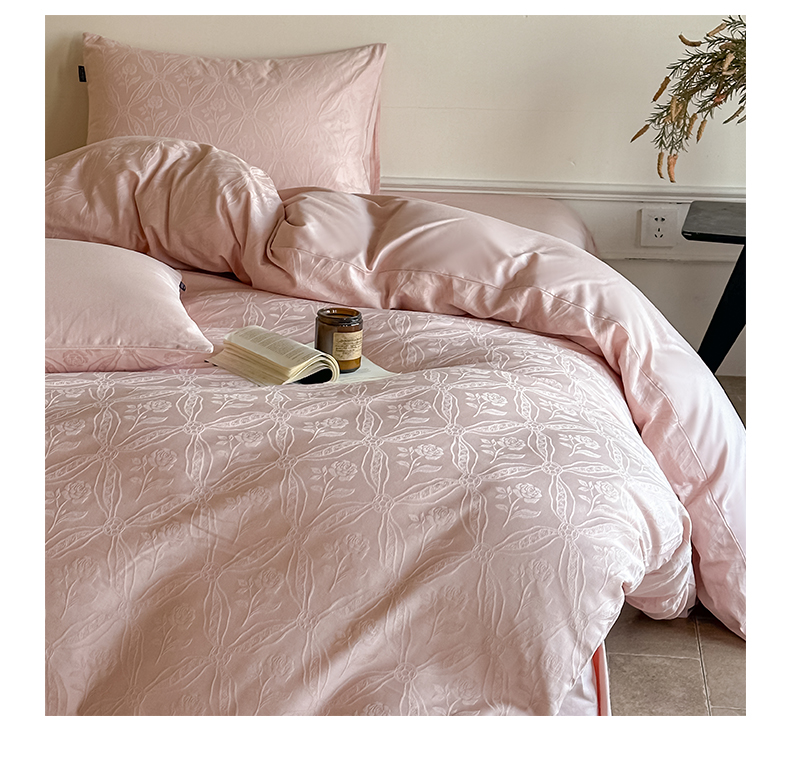 如一 2026新款60S全棉水洗提花立体厚织浮雕四件套 暗香-唯美粉