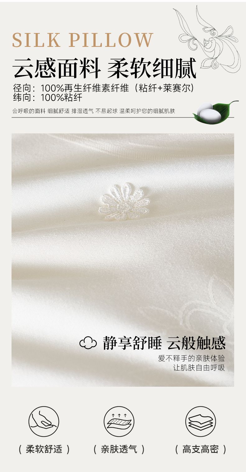 商品名称:昕科 2026新款凤尾花蚕丝枕-花朵柞蚕丝枕芯大提花莱赛尔蚕丝枕头 凤尾花蚕丝枕-月光白/一对装