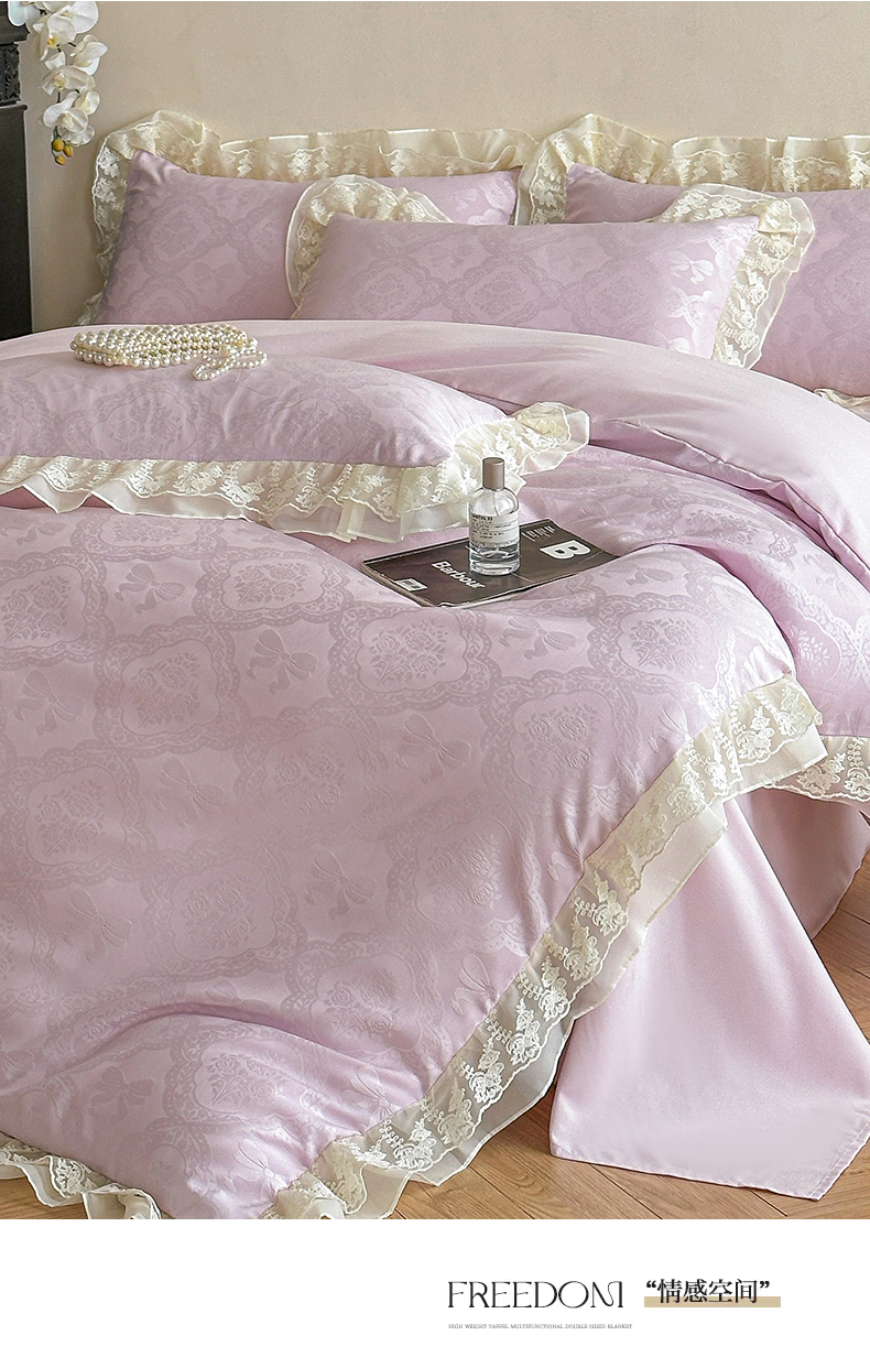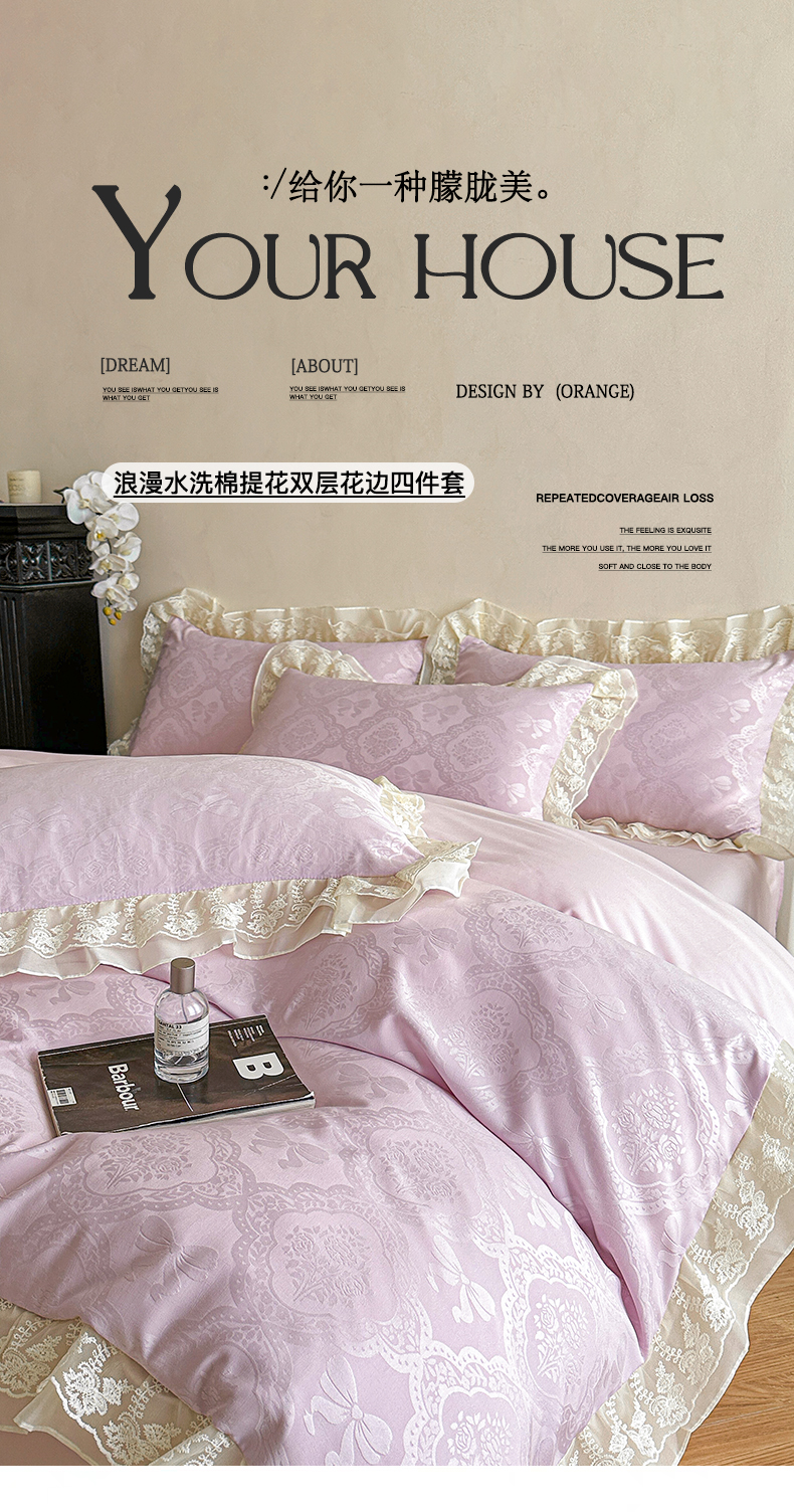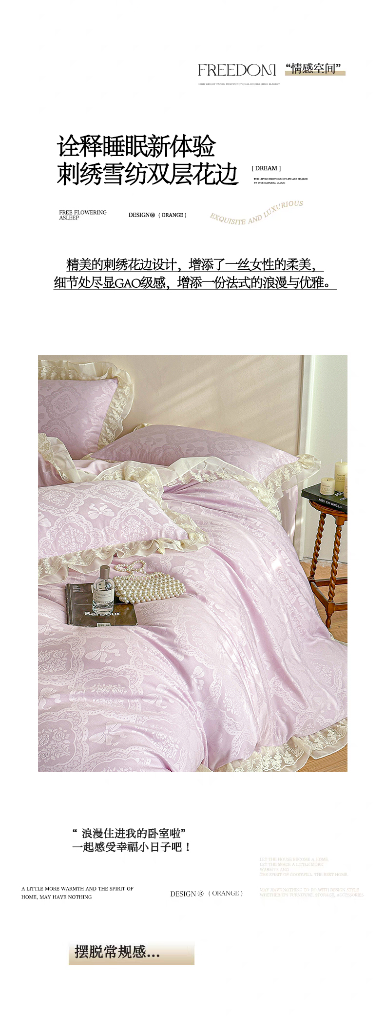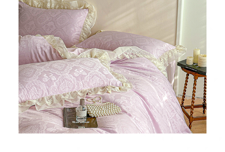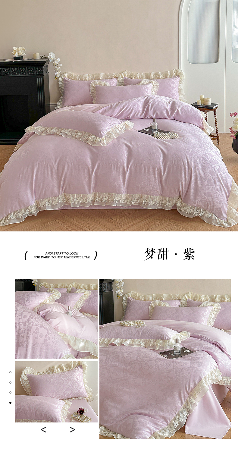 当前位置: 91家纺网 > 商品网购 > 床品套件 > 四件套 > 水洗棉四件套 > 你好美丽 2026新款水洗棉提花双层雪纺花边四件套-梦甜系列 梦甜紫