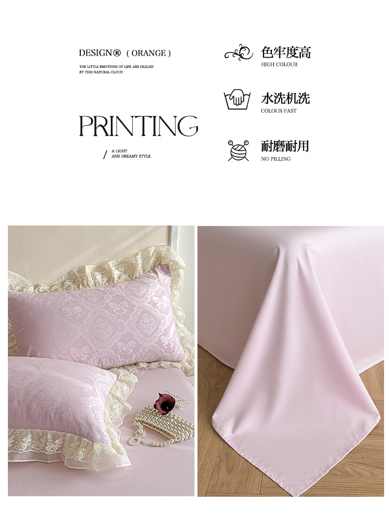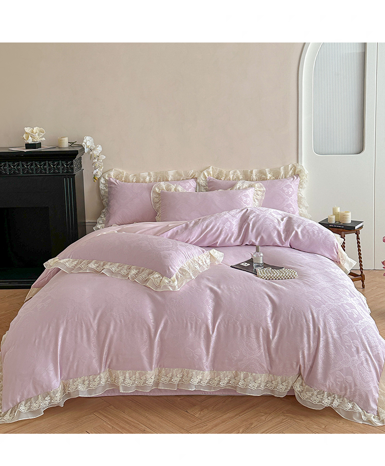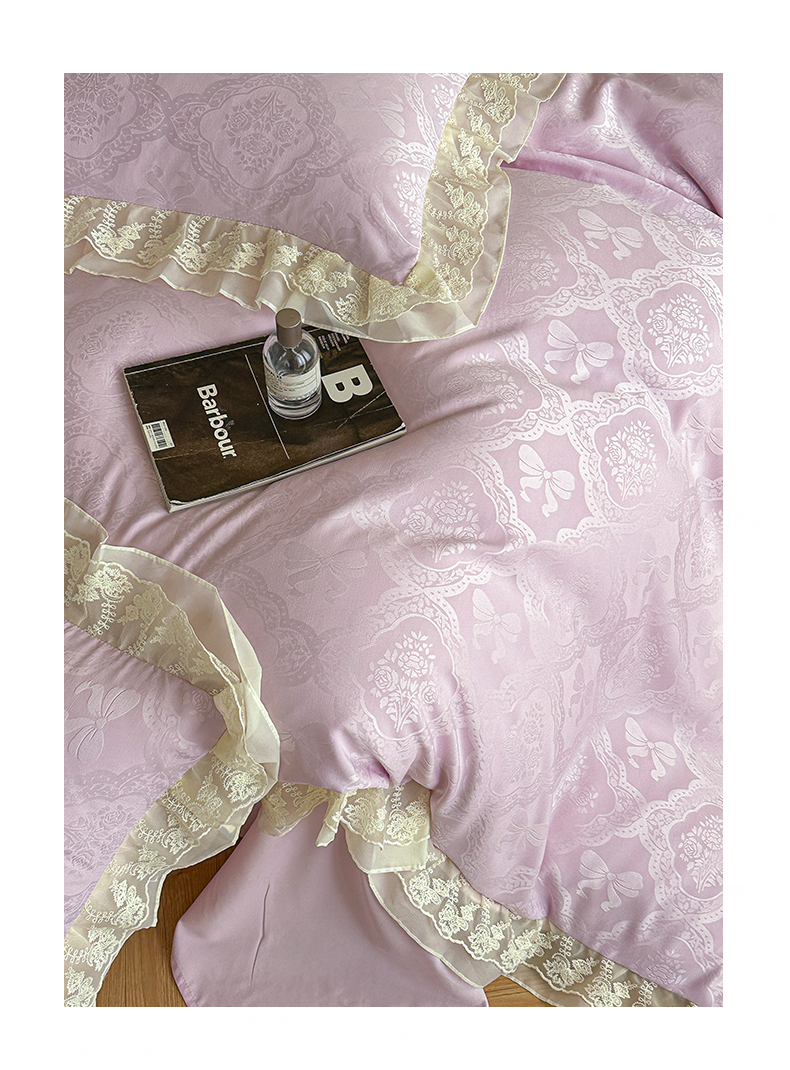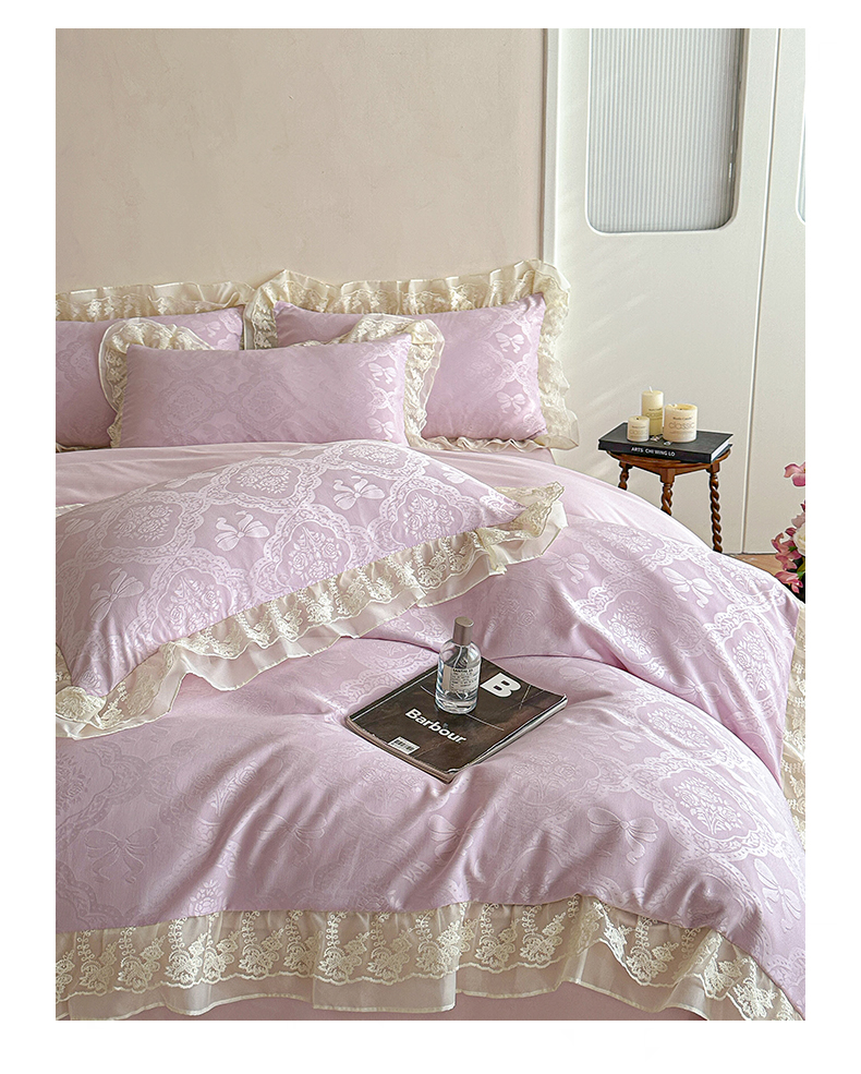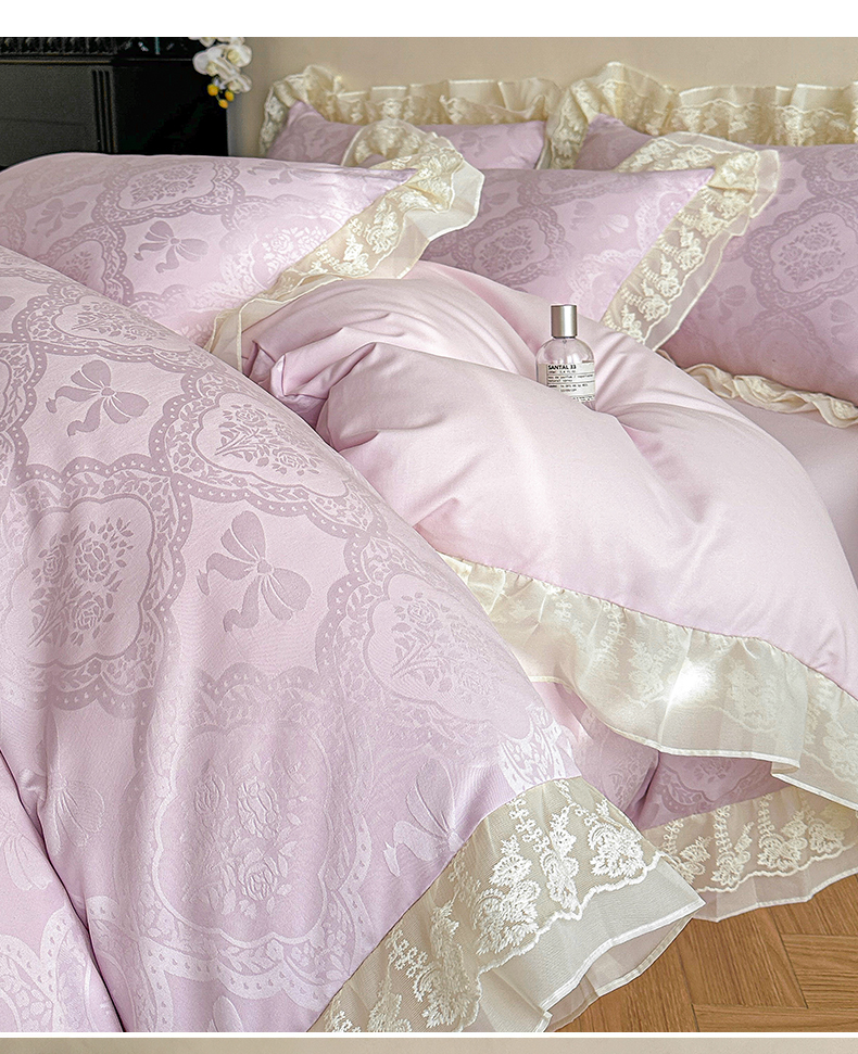 当前位置: 91家纺网 > 商品网购 > 床品套件 > 四件套 > 水洗棉四件套 > 你好美丽 2026新款水洗棉提花双层雪纺花边四件套-梦甜系列 梦甜紫