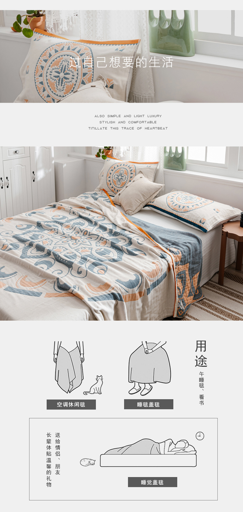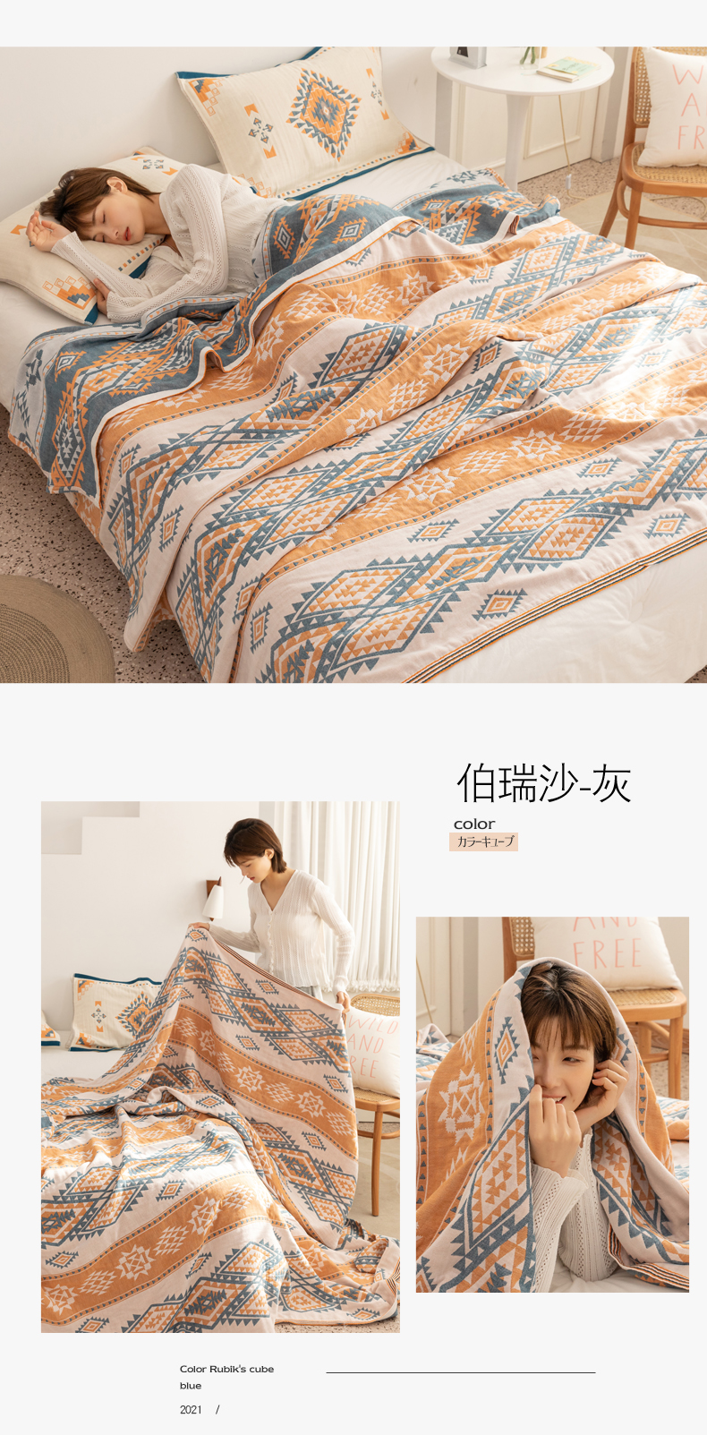 商品名称:(总)朴尔家纺-毛巾被 2026新款波西米亚风全棉四层纱布毛巾被-朴尔经典款常年备货