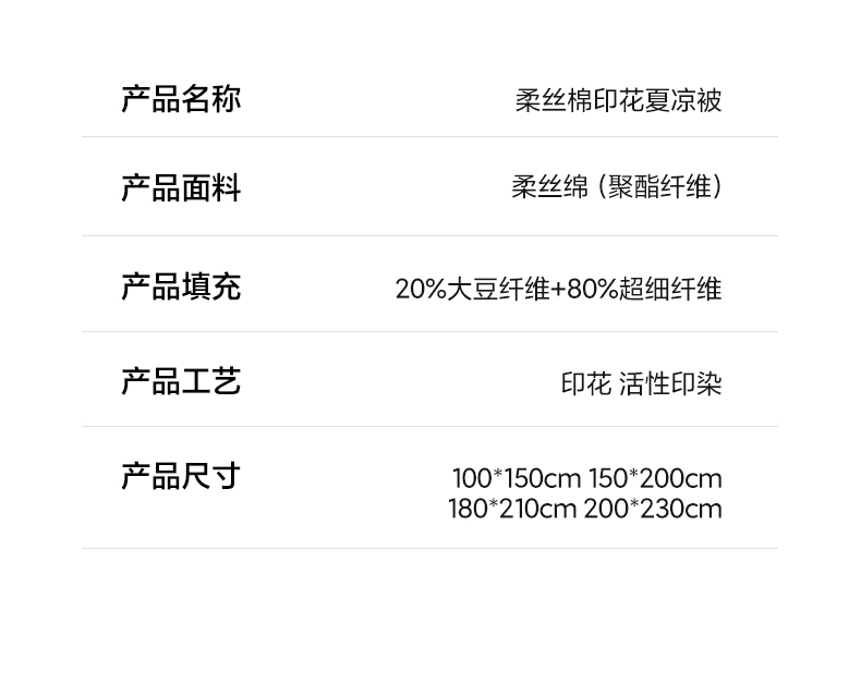 商品名称:心悦家纺 2026新款柔丝绵印花夏凉被空调被夏被系列 浅影兰