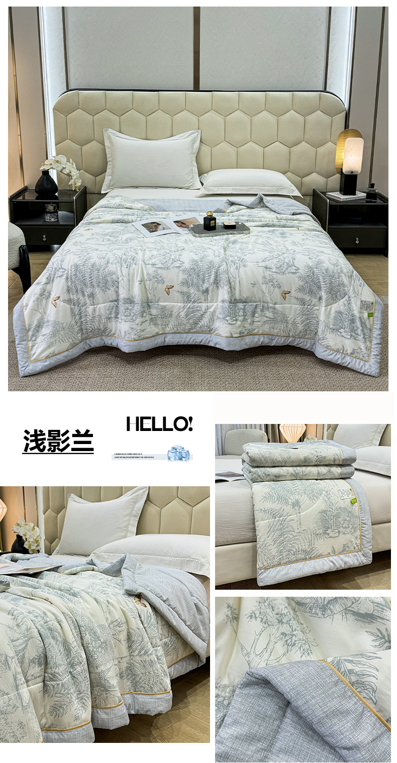 (总)心悦家纺 2026新款柔丝绵印花夏凉被空调被夏被系列,浅影兰,浅影绿,古典灰,烂漫花季