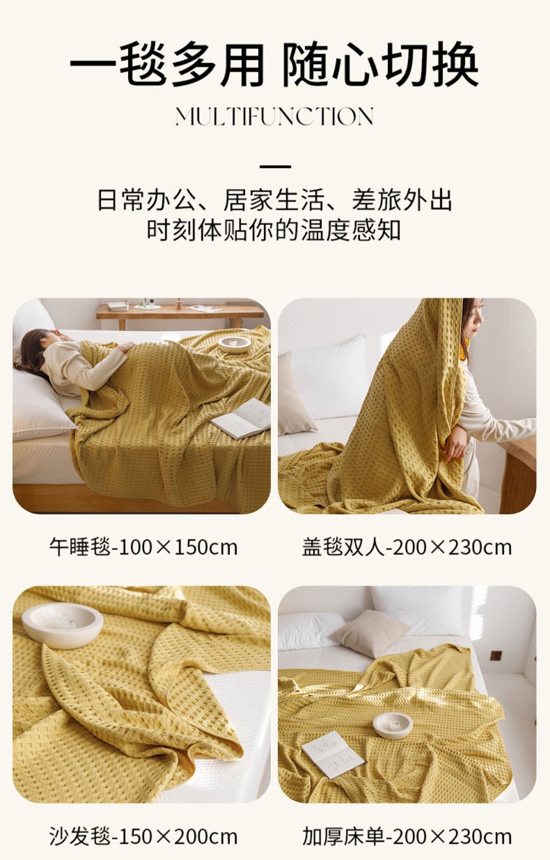 商品名称:(总)朴尔家纺-毛巾被 2026春夏新款柔软风纯色华夫格全棉纯棉纱布毛巾被系列夏被夏凉被空调被