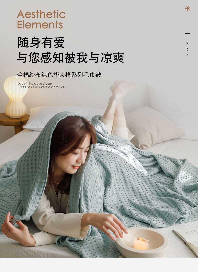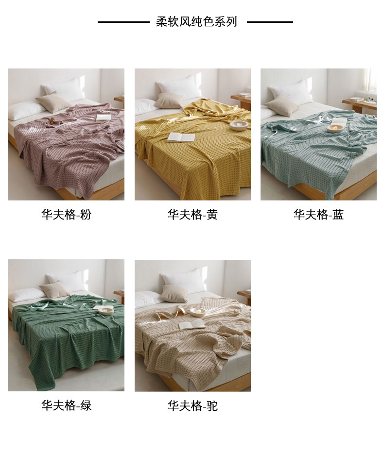 (总)朴尔家纺-毛巾被 2026春夏新款柔软风纯色华夫格全棉纯棉纱布毛巾被系列夏被夏凉被空调被