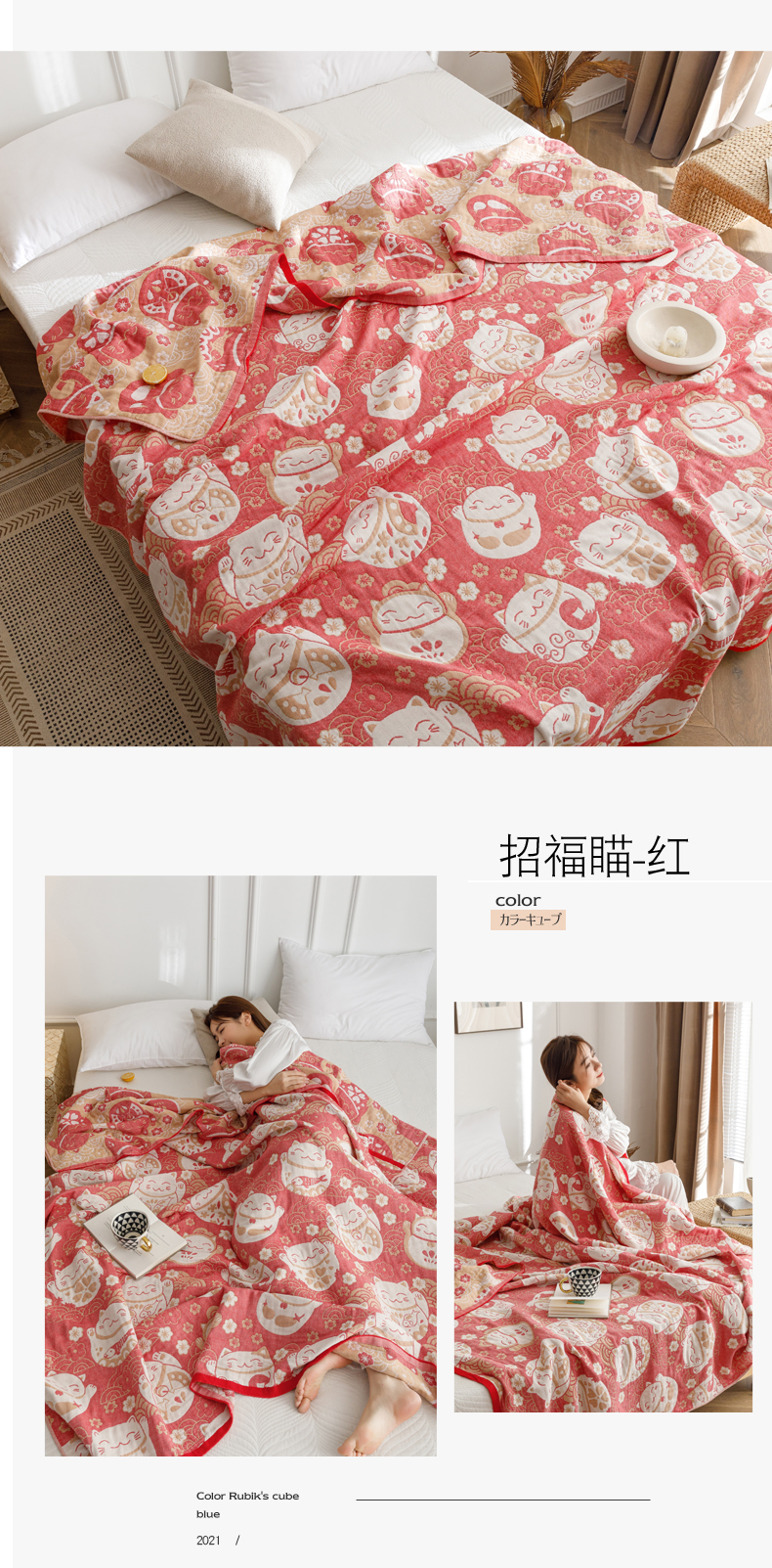 被子 > 夏被 > 朴尔家纺-毛巾被 2026春夏新款水洗全棉纯棉四层细纱系列毛巾被下班夏凉被空调被 喜登高枝-红毛巾被
