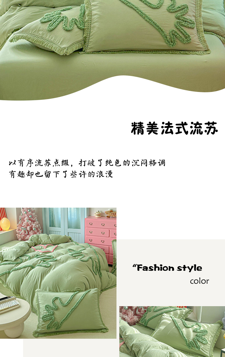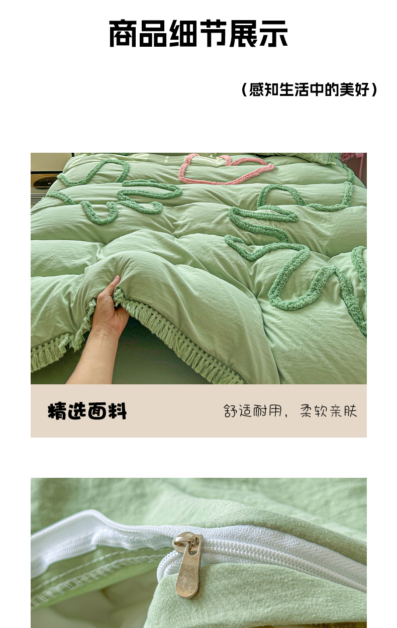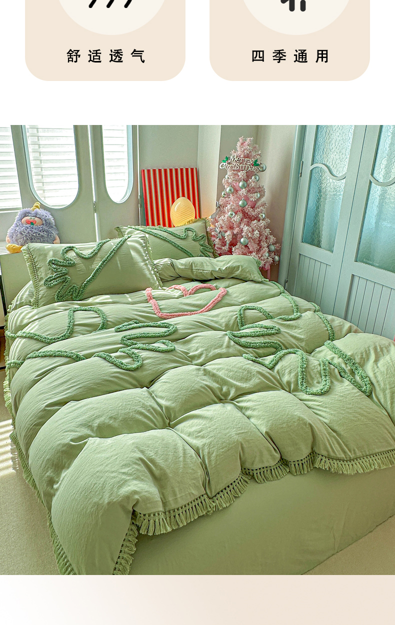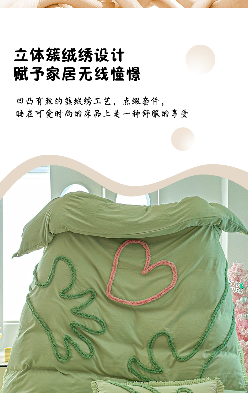 当前位置: 91家纺网 > 商品网购 > 床品套件 > 四件套 > 其它四件套 > 缘生活 2026新款立体簇绒绣流苏四件套 大爱爱心手-抹茶绿