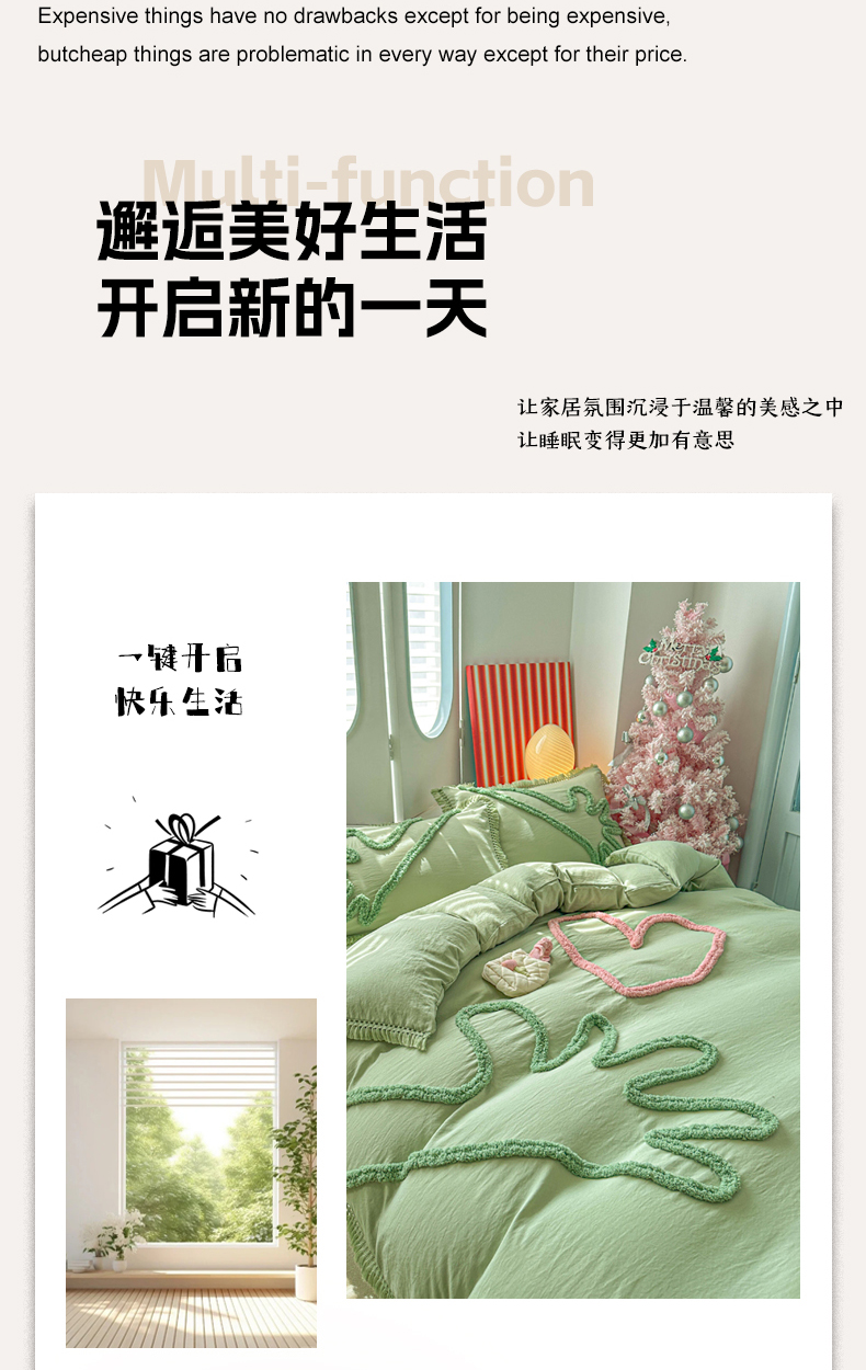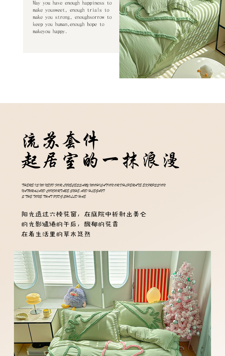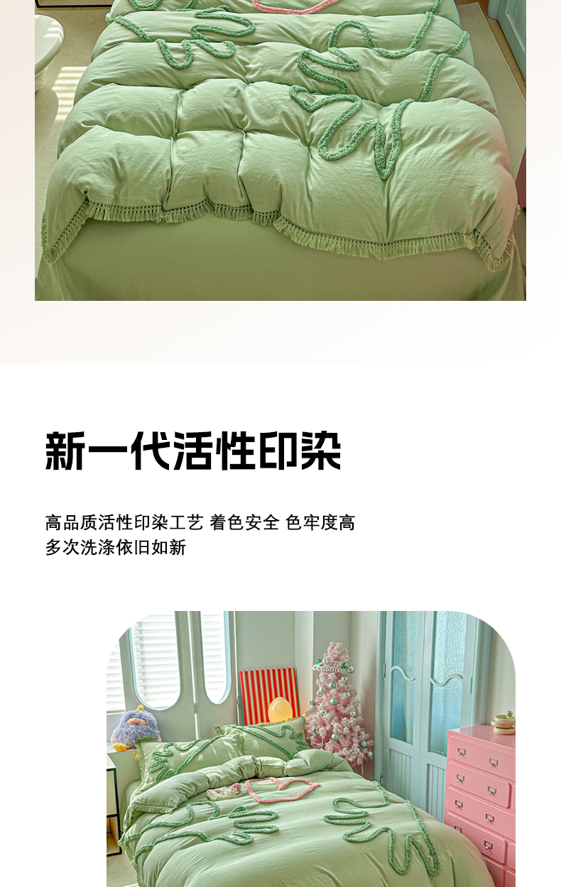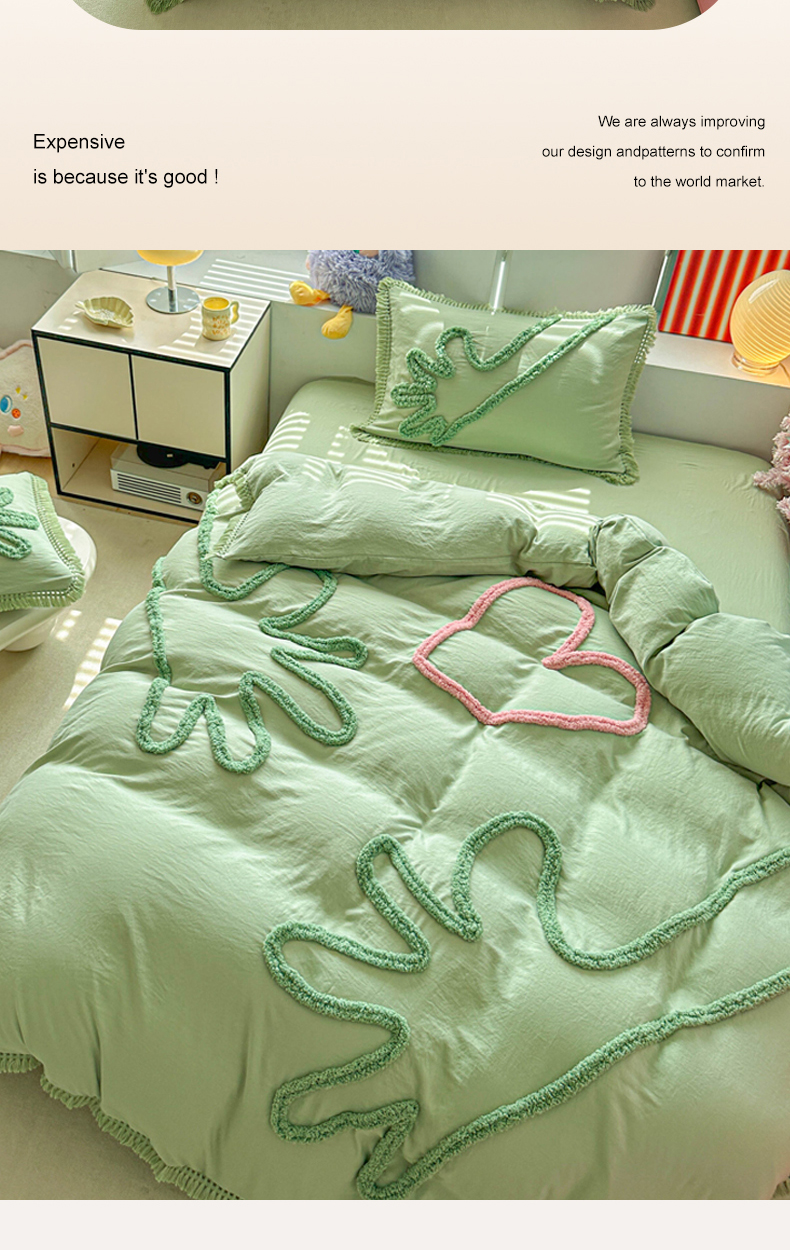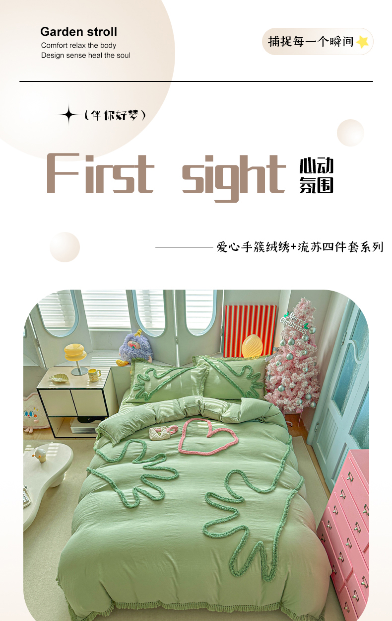 当前位置: 91家纺网 > 商品网购 > 床品套件 > 四件套 > 其它四件套 > 缘生活 2026新款立体簇绒绣流苏四件套 大爱爱心手-抹茶绿