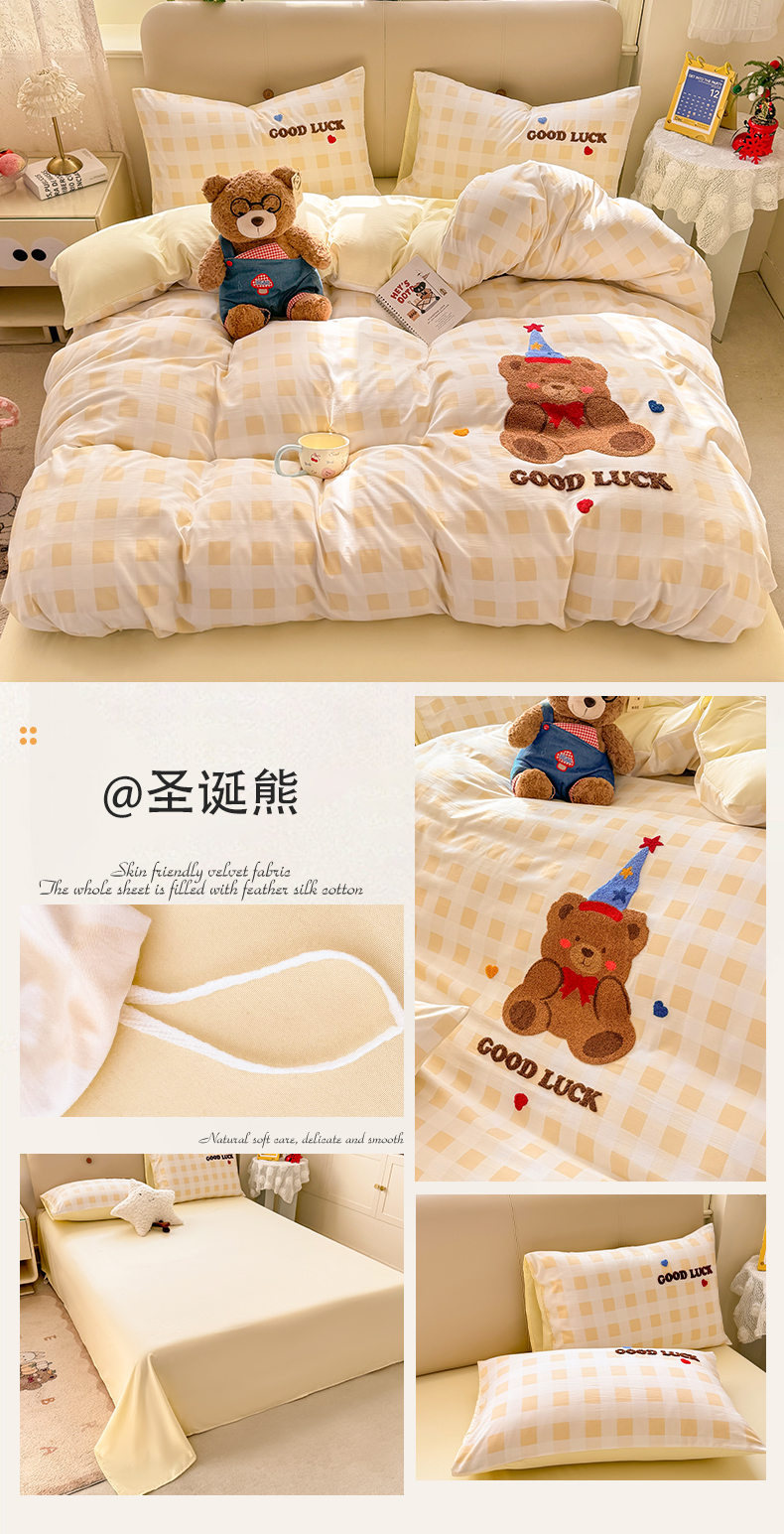 (总)曲之慕 2025新款A类高克重牛奶绒印花毛巾绣四件套,毛巾绣-粉小兔,毛巾绣-绿森林,毛巾绣-马戏团,毛巾绣-暖暖熊,毛巾绣-小花园