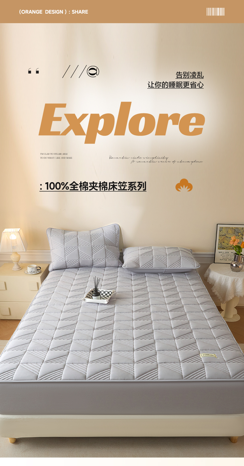 当前位置: 91家纺网 > 商品网购 > 床上用品 > 床笠 > 芬晴家纺 2026新款全棉纯棉夹棉棉花床笠单床笠-方纹系列 方纹-浅卡