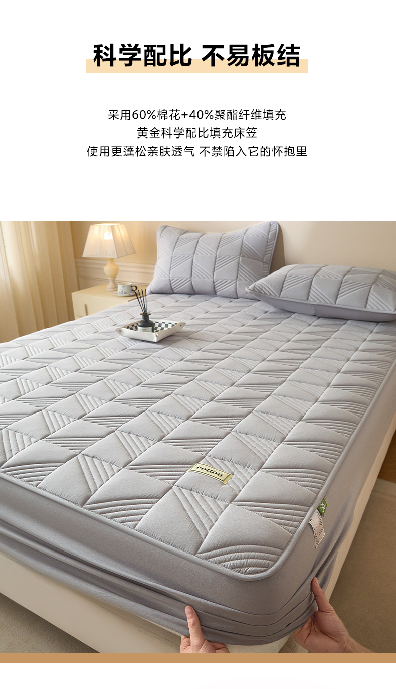 • 91家纺网 家纺一手货源 找家纺 芬晴家纺 2026新款全棉纯棉夹棉棉花床笠单床笠-方纹系列 方纹-浅卡
