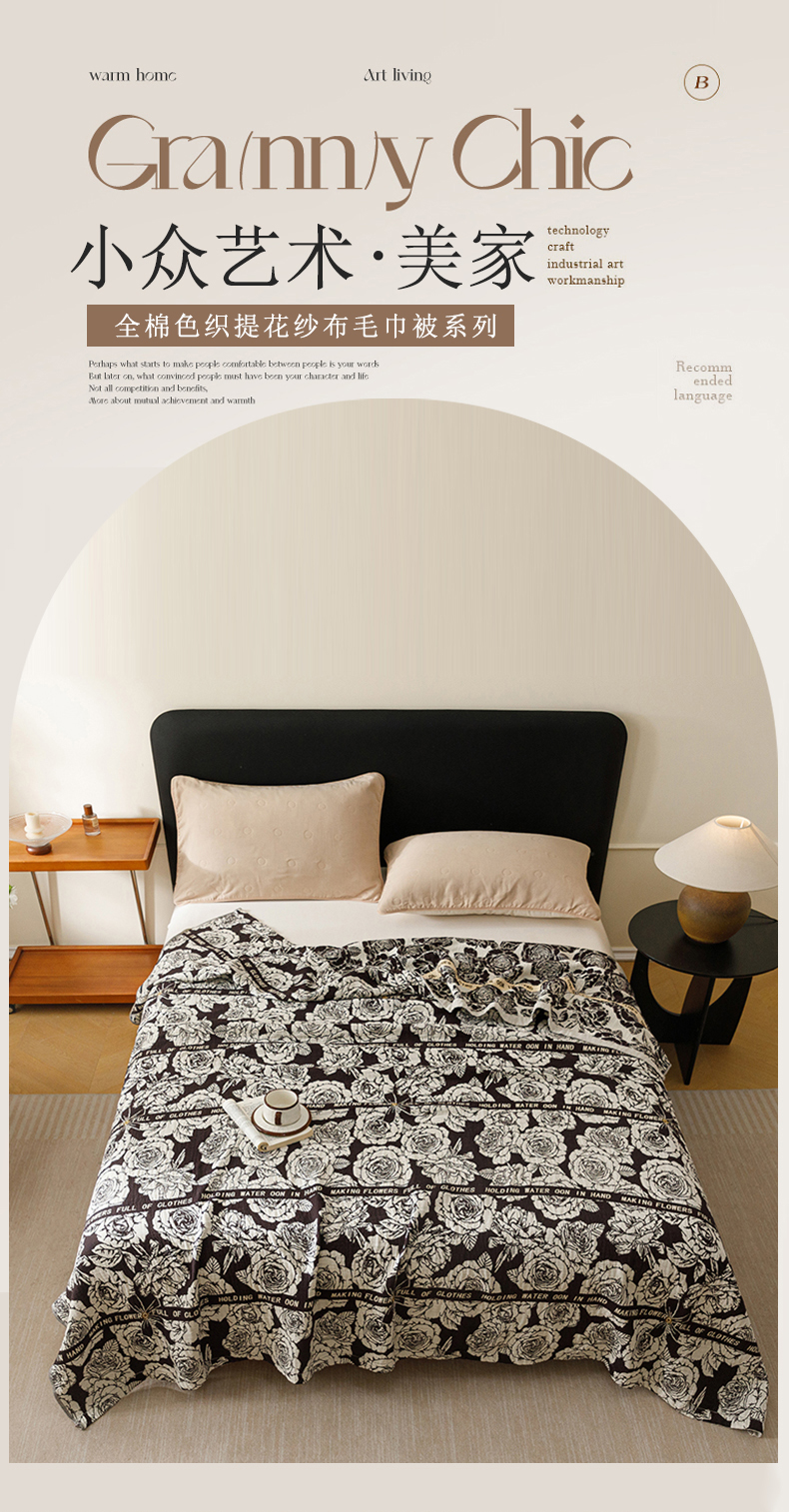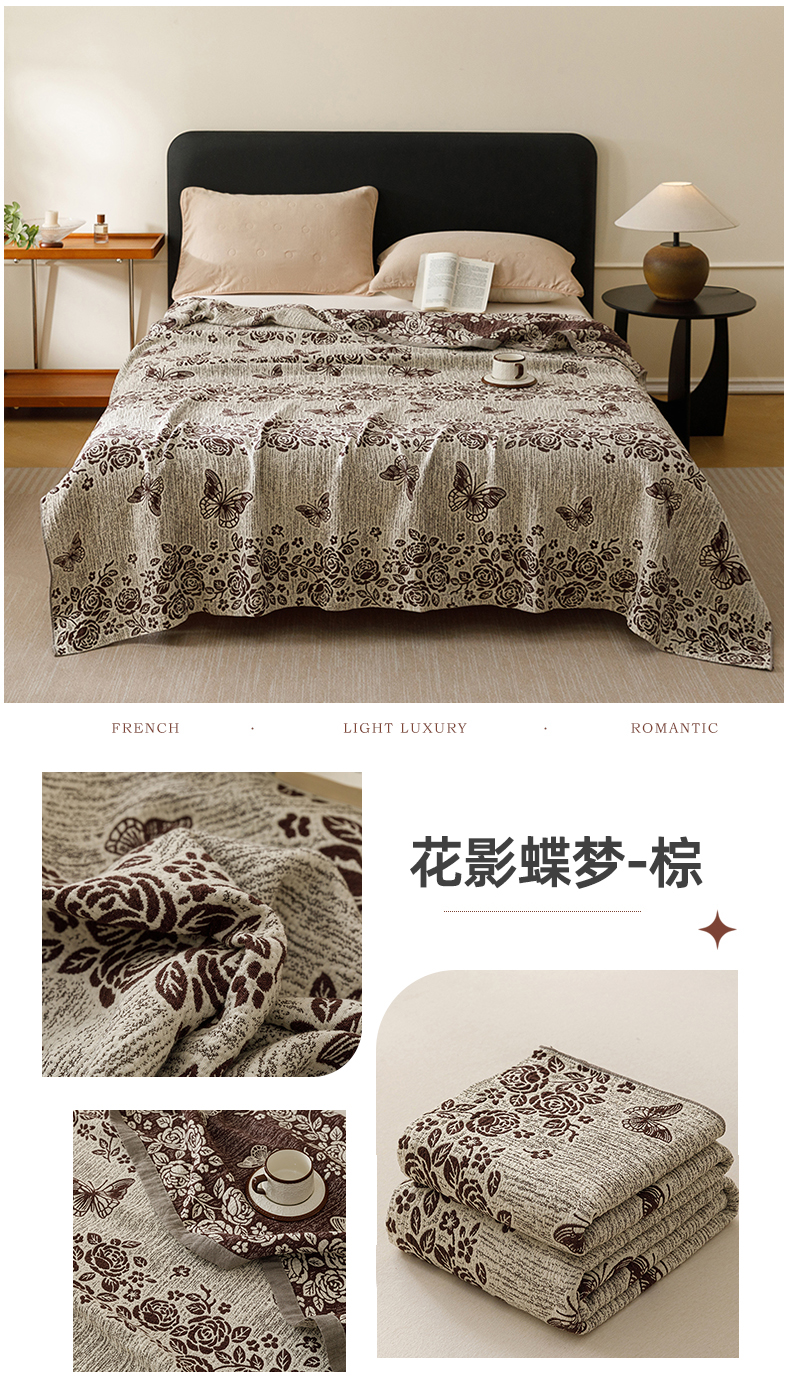 (总)悦然毛巾被 2026新款美拉德色织提花全棉纯棉纱布毛巾被夏被夏凉被空调被,花影蝶梦,花影蝶梦棕,简居,简居咖,夜宴玫瑰,夜宴玫瑰棕,组合图仅供展示不可下单